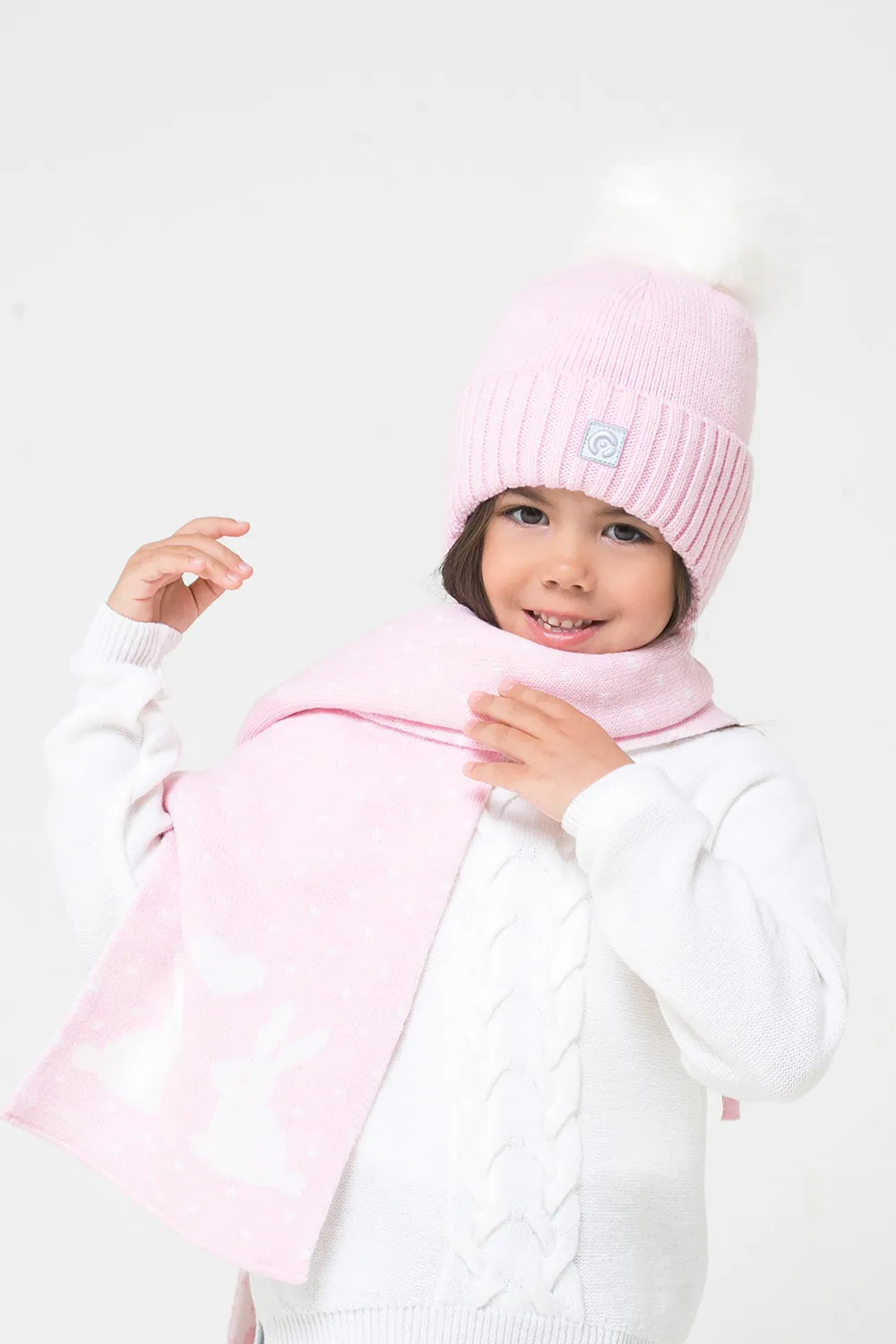 Описание: Однотонная шапка для девочки из полушерстяной пряжи. Подкладка из хлопкового трикотажа интерлок. На макушке помпон из искусственного меха. По низу эластичный отворот, цельнокроеные уши с широкими завязками. Спереди светоотражающая нашивка.