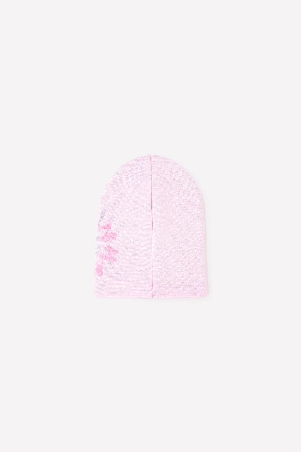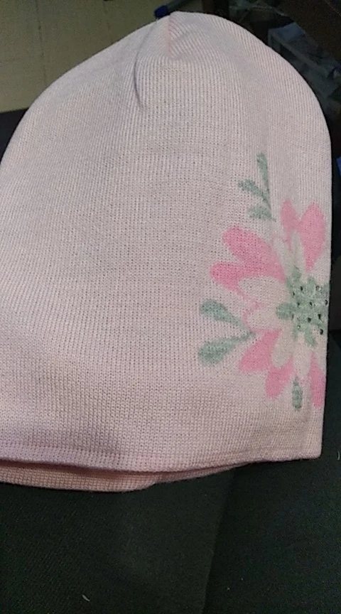 Описание: Шапка для девочки двухслойная из однотонной полушерстяной пряжи. Скругленная макушка. Сбоку вывязанный рисунок со стразами.