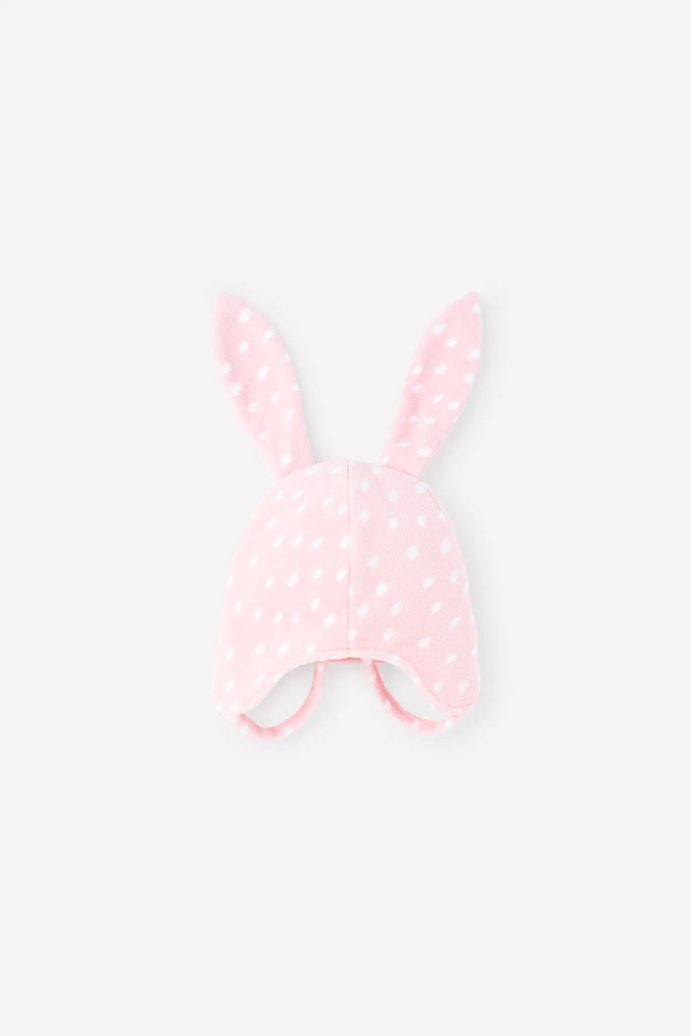 Описание: Шапочка двойная из набивного флиса, с завязками. На макушке декоративные ушки. Спереди светоотражающая нашивка.