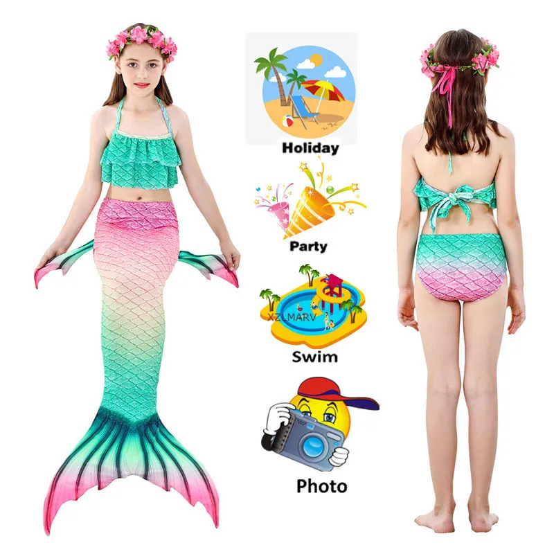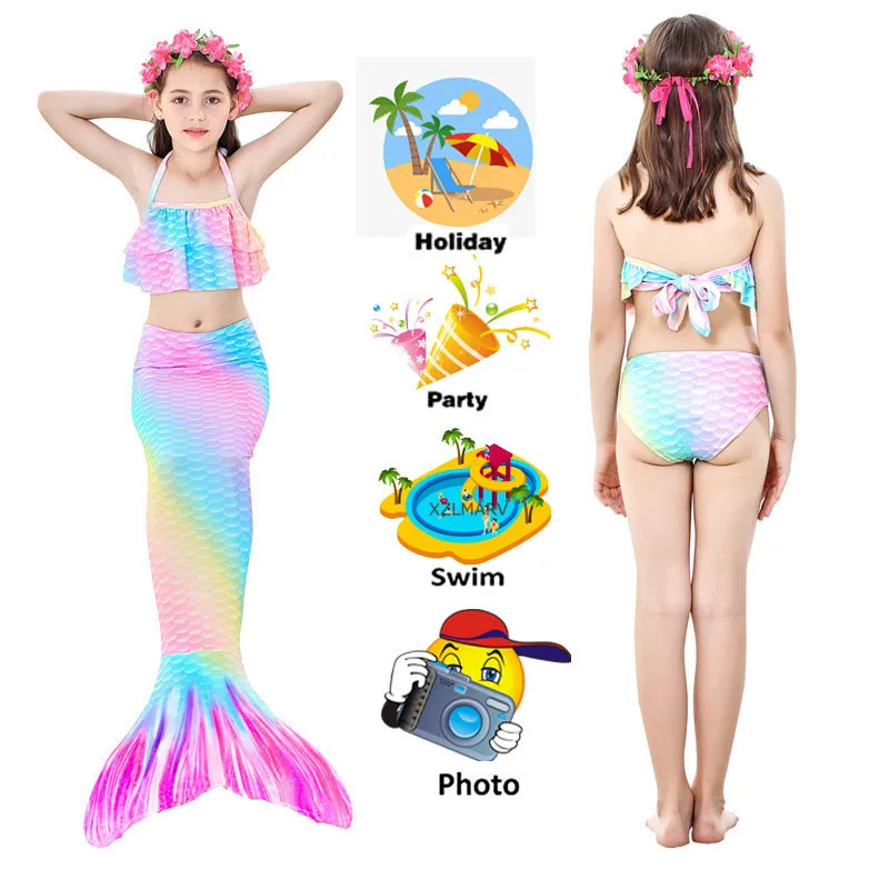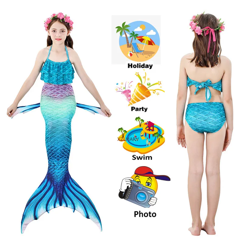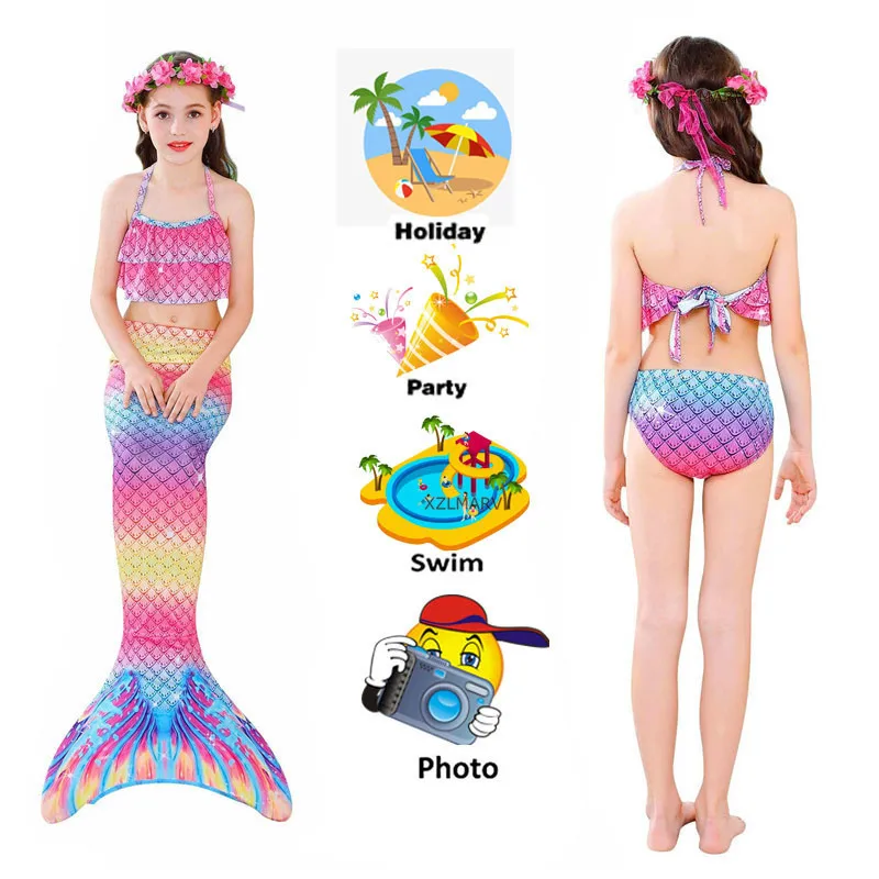 Набор включает 1: 3Шт. Купальник (1 бюстгальтер + 1 шорты + 1 хвост русалки)