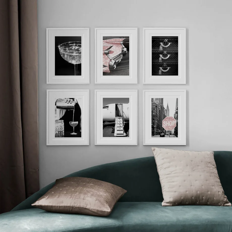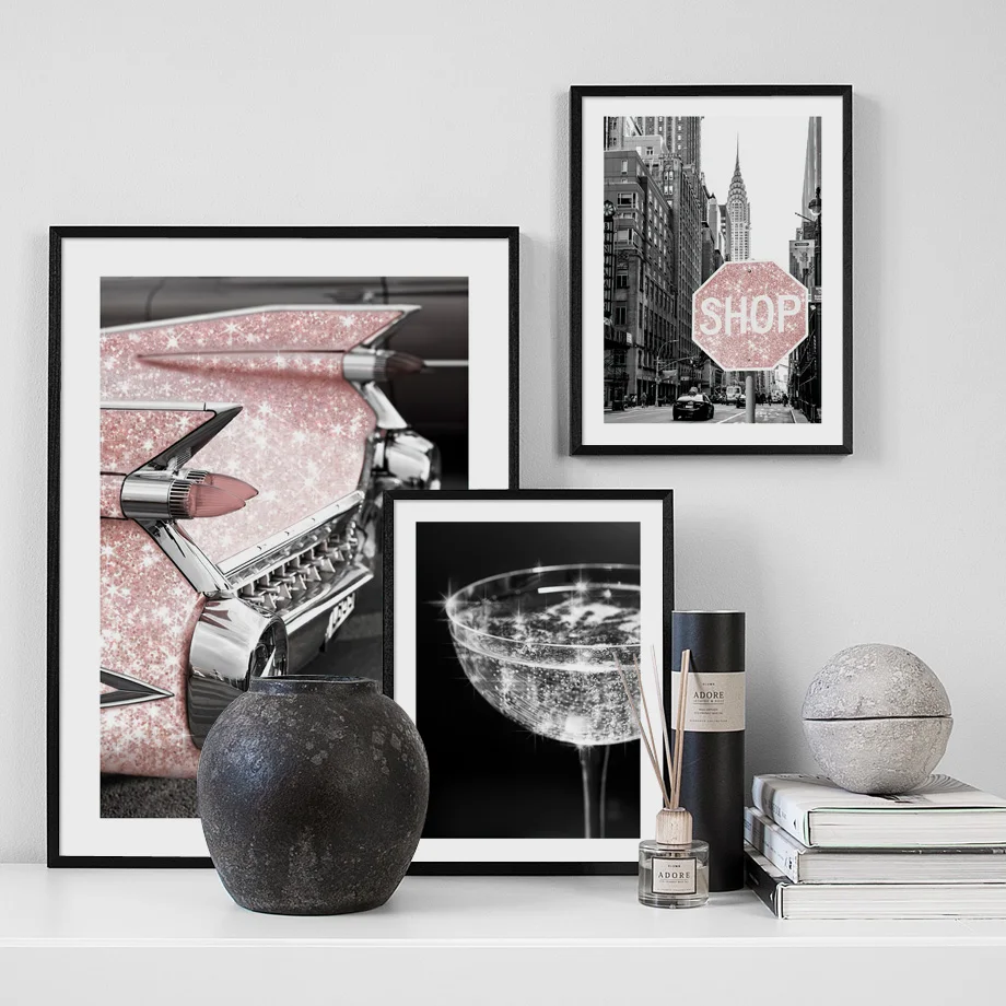 Блестящий спортивный автомобиль шампанское самолёт знак скандинавский стиль Искусство Печать на холсте Живопись Декор картины для гостиной