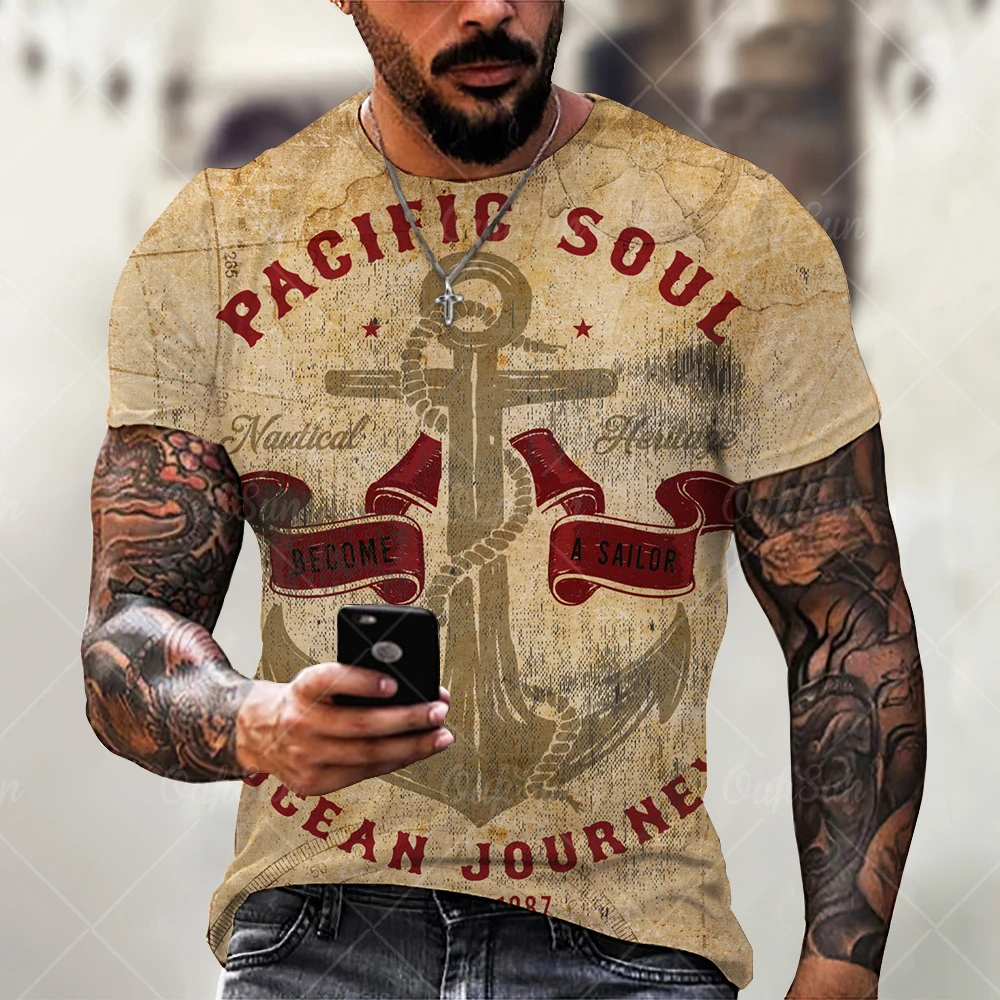 Мужская футболка с принтом бренда корабля Свободная Повседневная Уличная мода с коротким рукавом Красивая Мужская спортивная одежда