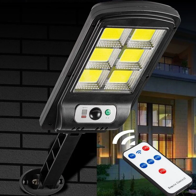 128 COB солнечный уличный фонарь COB + SMD, лампа на солнечной батарее с 3 режимами освещения, IP65, водонепроницаемый датчик движения, охранное освещение для сада, патио