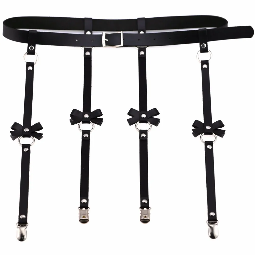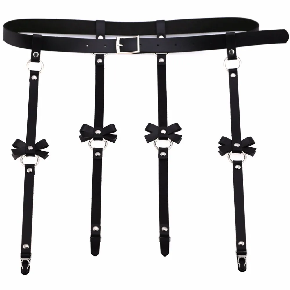Пояс для чулок унисекс, кожаный, с 4 подвязками и съемным бантом