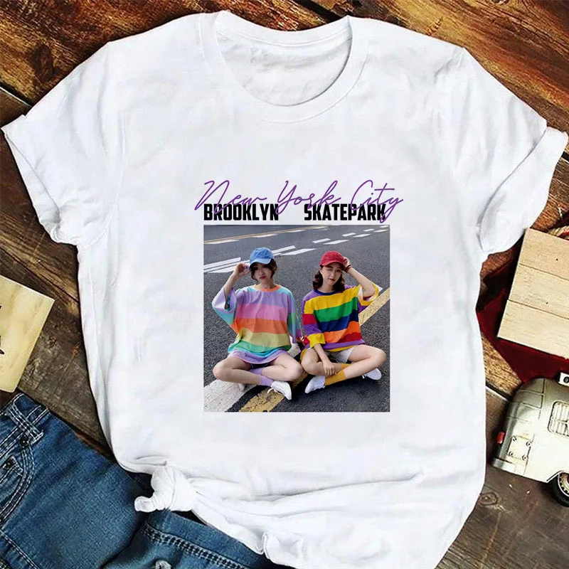 Футболка женская с принтом в стиле Харадзюку, милая рубашка в стиле 90-х с круглым вырезом, модная хипстерская одежда с узором