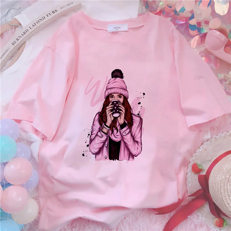 Розовая футболка с принтом на заказ, Женская футболка сделай сам с ...