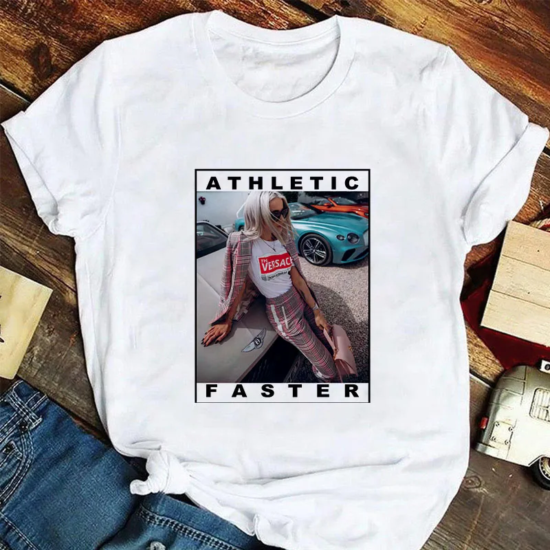 Женская футболка с коротким рукавом, белая футболка с принтом в сти...