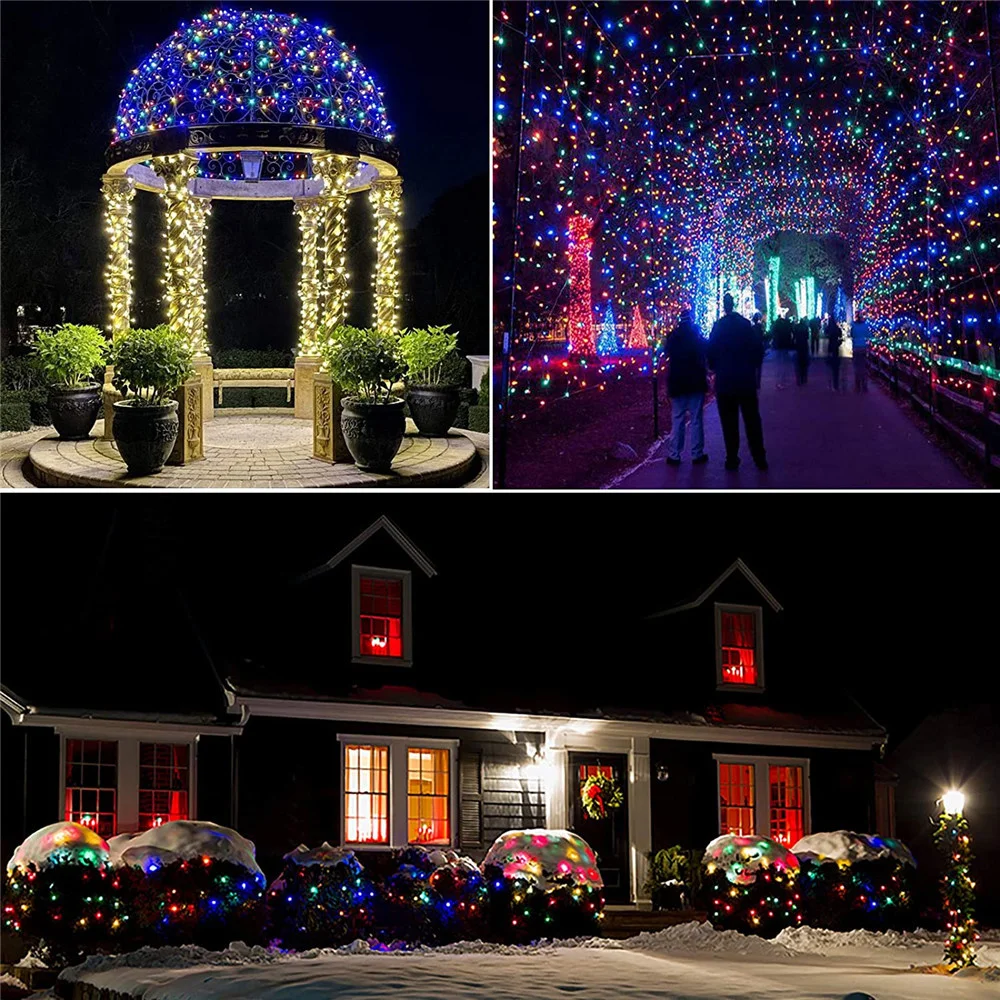 Гирлянда с сеткой на солнечной батарее, Праздничный Рождественский светильник, наружная садовая лампа для рождественской елки, заднего двора, украшение для свадебной вечеринки, 3x2 м