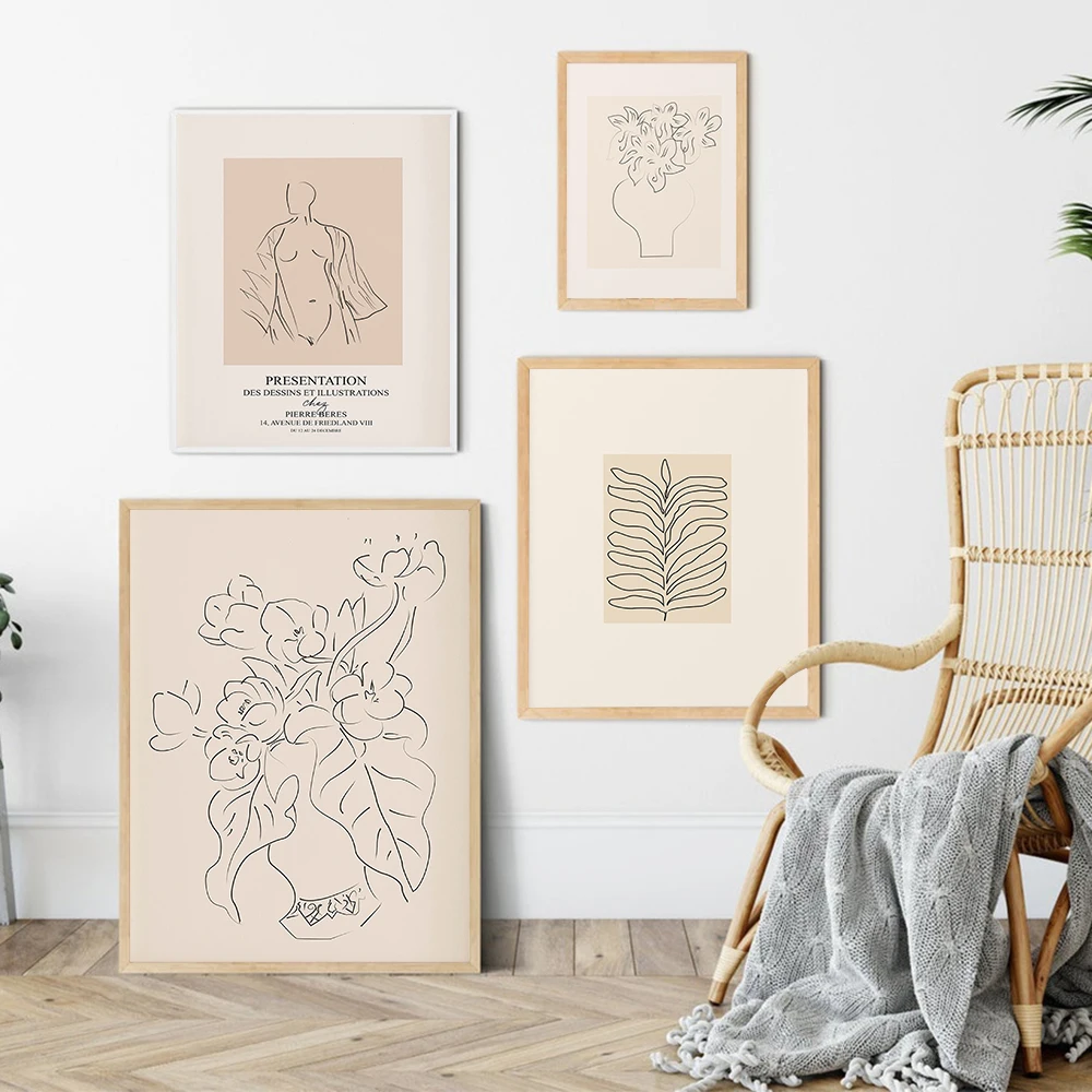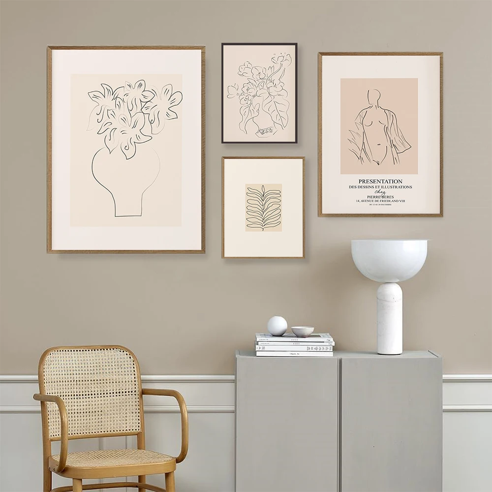 Современный плакат художественная Ваза цветов холст живопись абстрактная Художественная печать Цветочная линия художественная Настенная картина для гостиной домашний декор