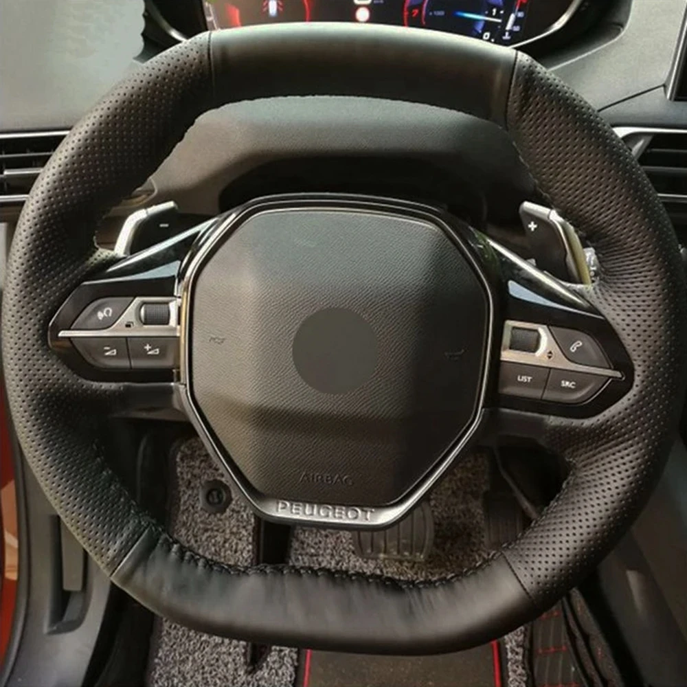 Прошитая вручную черная искусственная кожа, искусственная кожа для Peugeot чехол рулевого колеса автомобиля 508 208 2019 2020 3008 4008 5008-2016