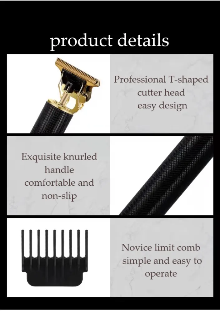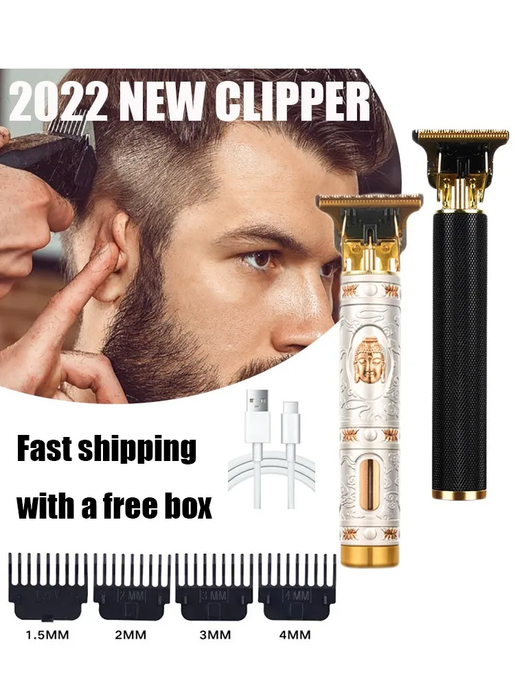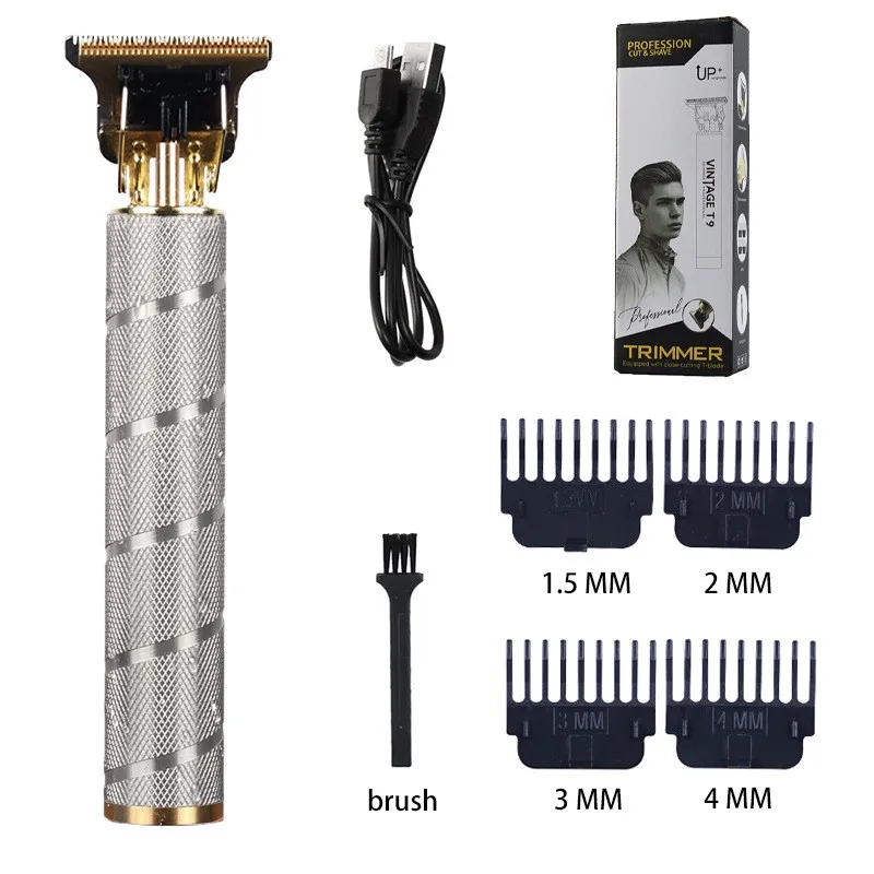 Электробритва для мужчин Прямая зарядка машинка для стрижки волос Профессиональный беспроводной триммер для бороды T9 простая ретро-гравировка лысая бритва