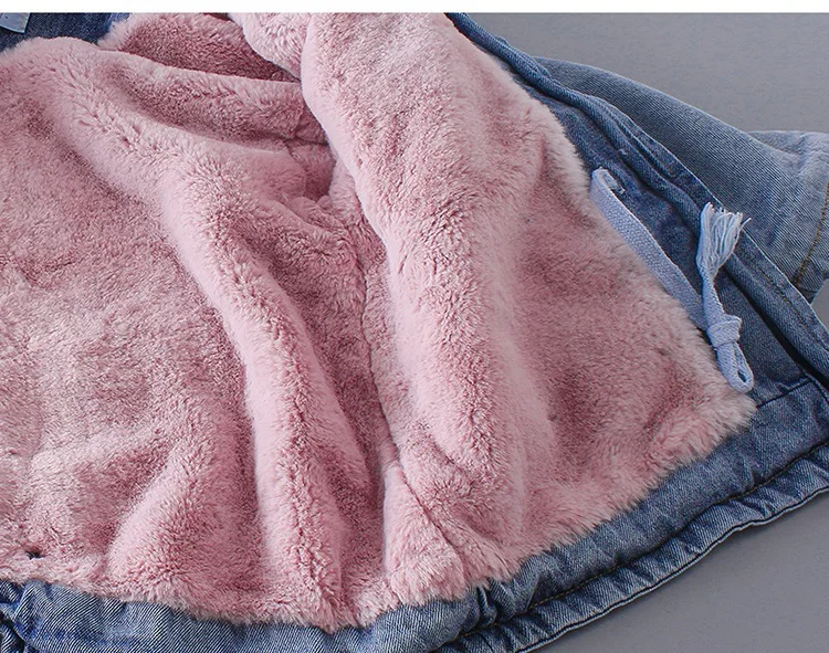 OLEKID2019 г. Зимняя джинсовая куртка для маленьких девочек, бархат...