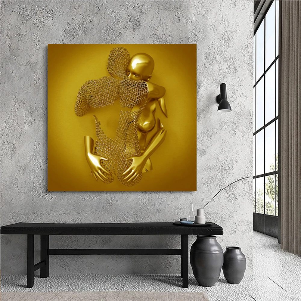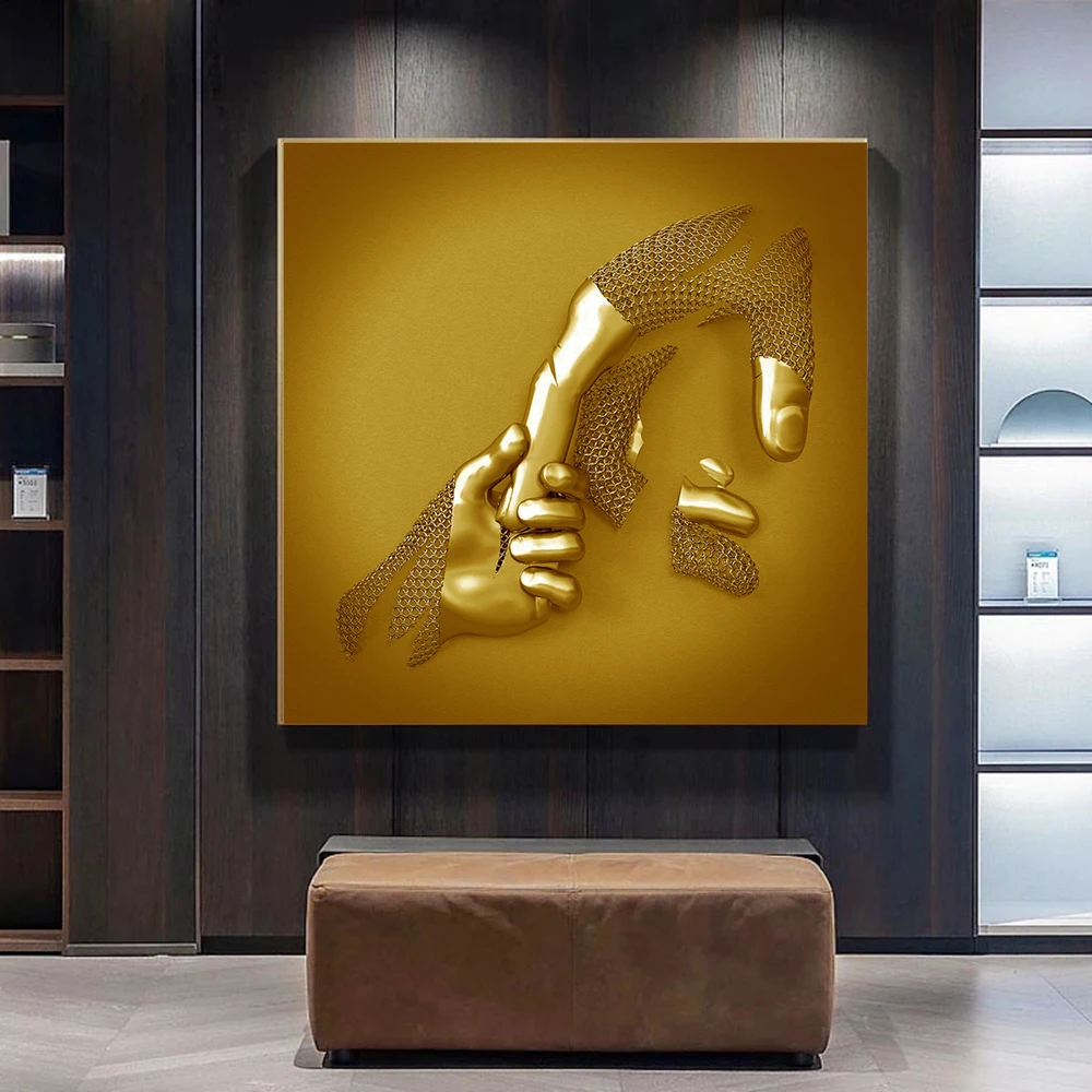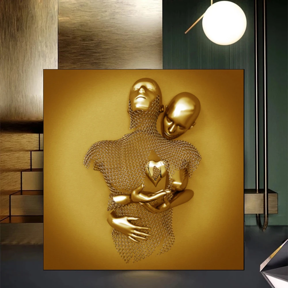 Настенная 3d Абстрактная Металлическая фигурка с любовным сердцем, скульптура, Картина на холсте, подвесной холщовый постер для украшения дома и офиса, без рамки