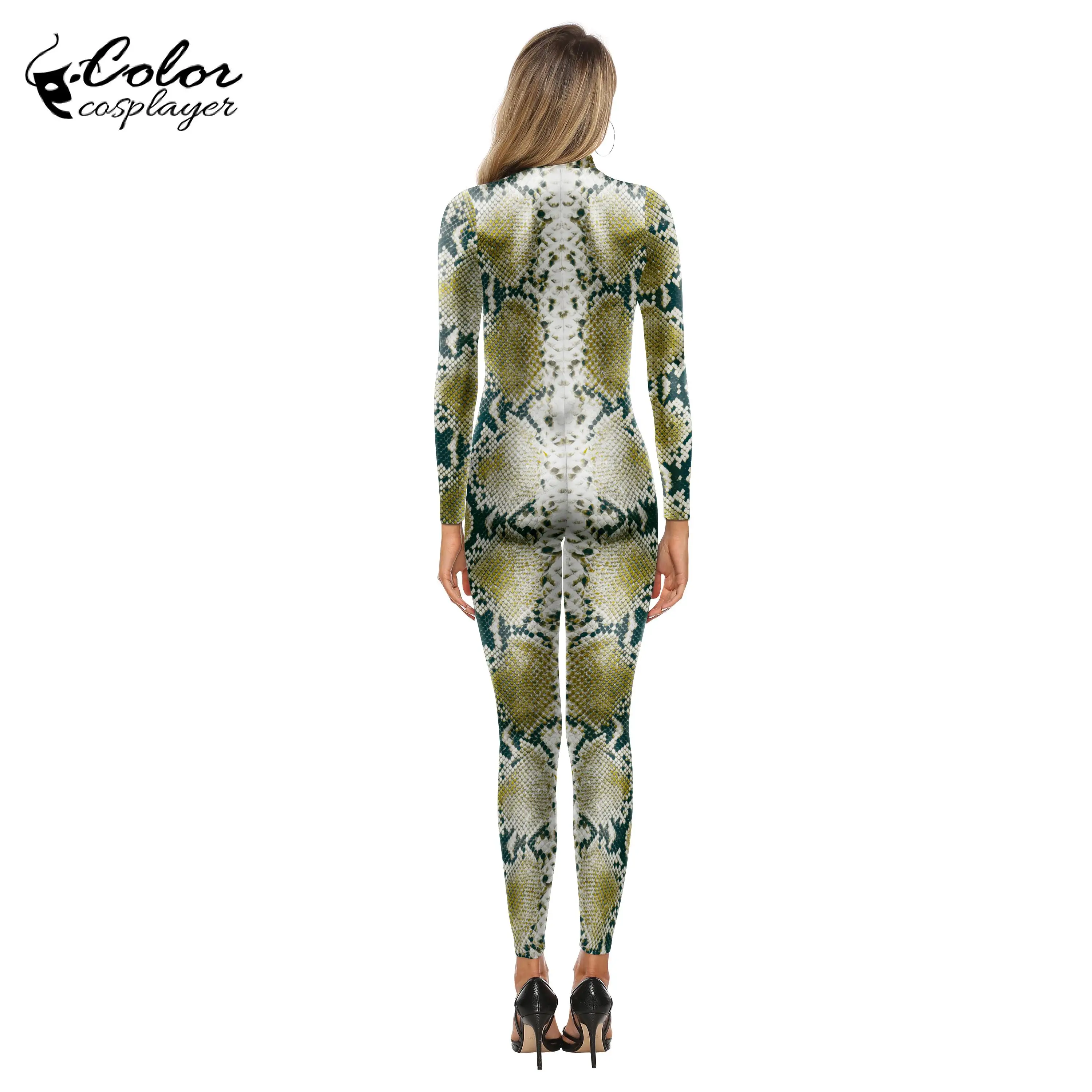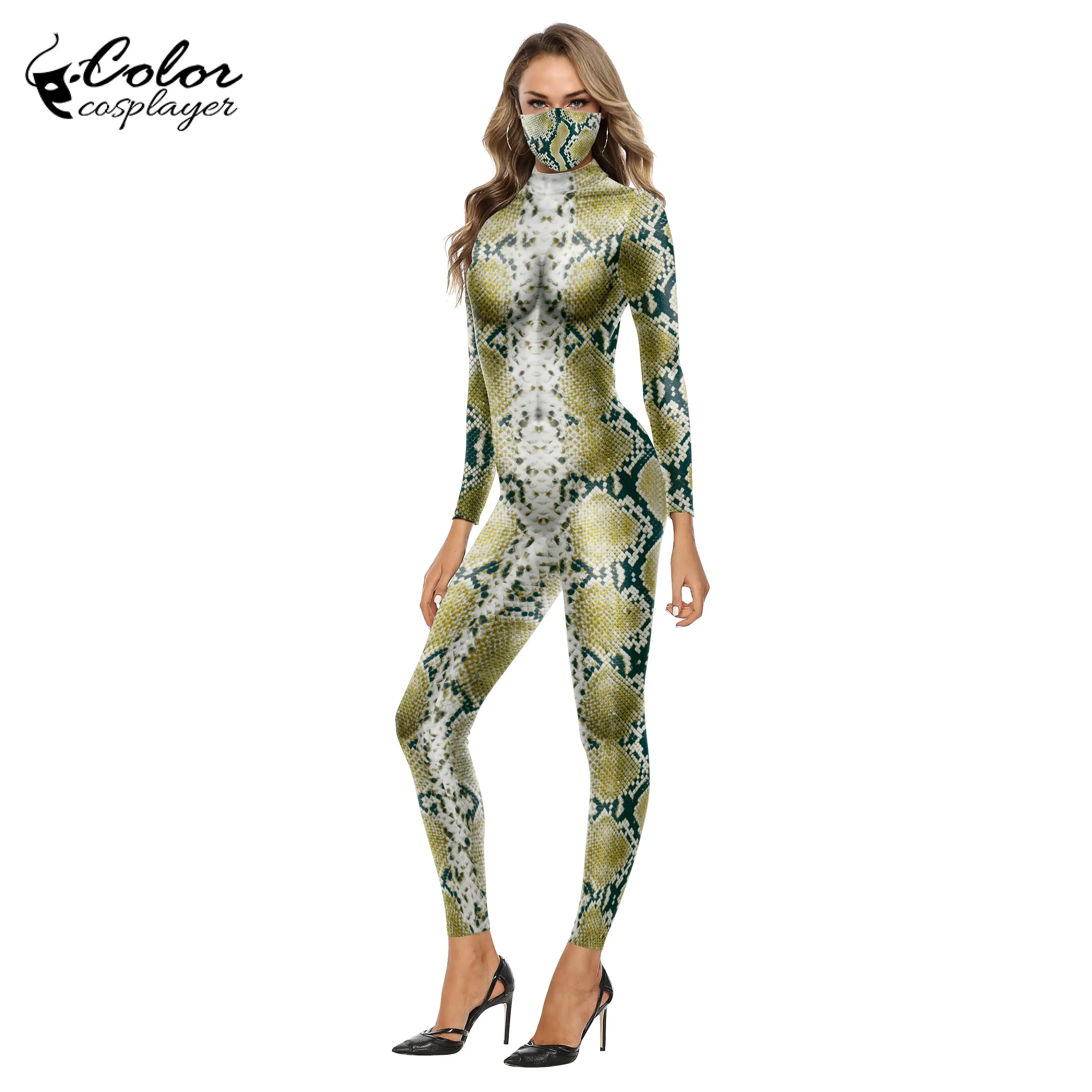 Карнавальные модные костюмы с животными для вечерние, женский сексуальный костюм-кошка зентай со змеиным рисунком, 3D маска с цифровым принтом, косплей, боди, Комбинезоны