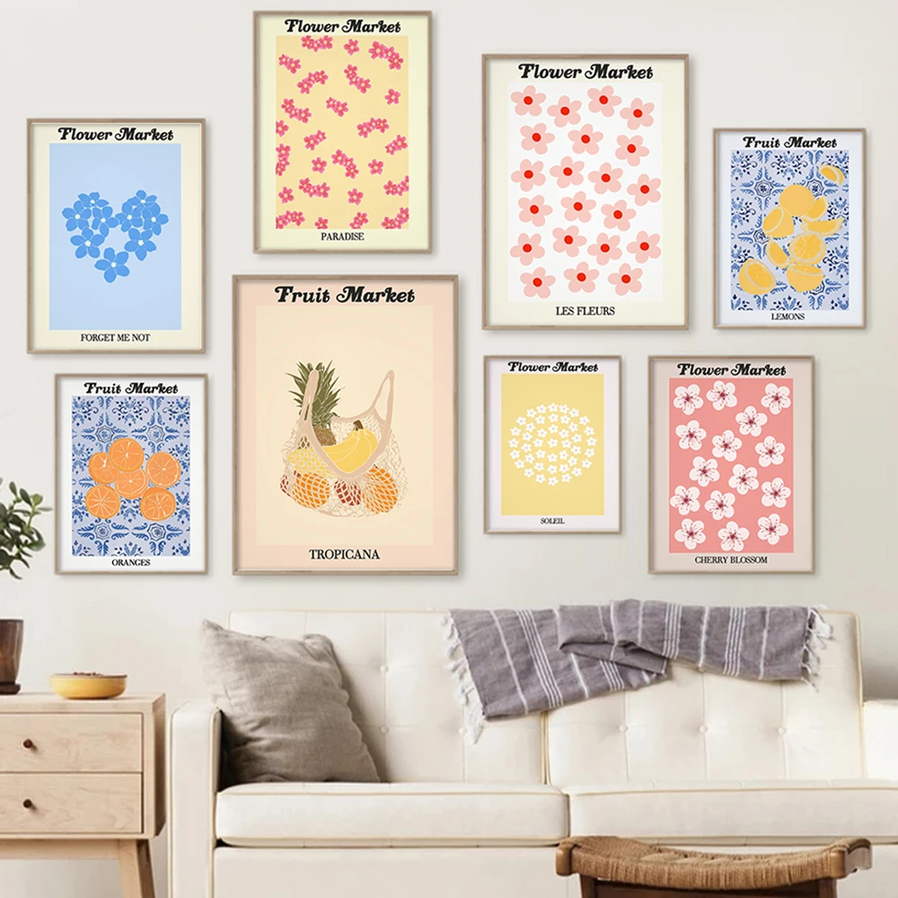 Абстрактный Цветочный рынок, фрукты, цитрусовые, лиметта, настенное искусство, холст, живопись, скандинавский постер и искусство для декора гостиной