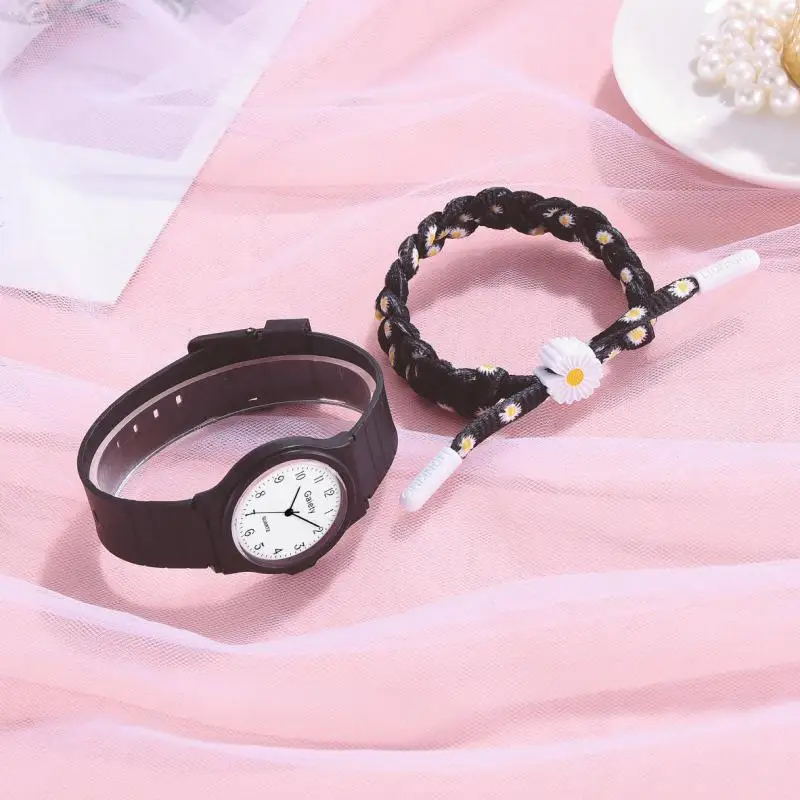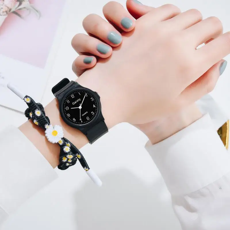 Женские часы Gaiety высокого качества, новые черные силиконовые простые ультратонкие Модные кварцевые часы с маргаритками и браслетом