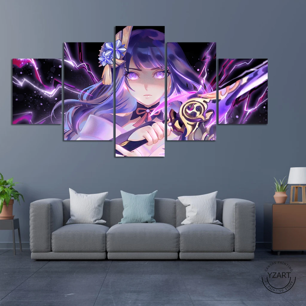 53 шт. нетканый Райден шогун геншин ударная видеоигра плакат для спальни декор холст настенная живопись подарок