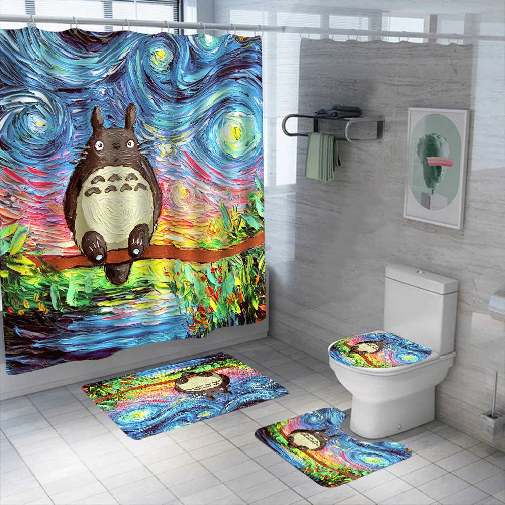 Totoro занавеска для душа с рисунком в стиле аниме Мой сосед s, водонепроницаемая занавеска для душа, занавеска для ванной из полиэстера, 3D мультяшный декор для ванной комнаты