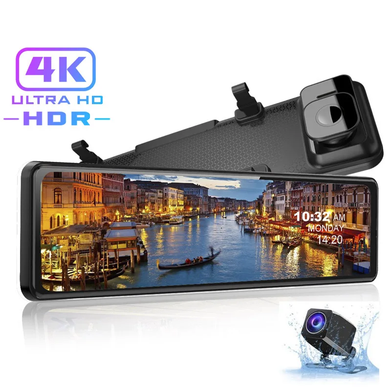 Видеорегистратор SKARA 4K, Автомобильный видеорегистратор Sony IMX 415, 12-дюймовый сенсорный экран, Mirro камера заднего вида, GPS, видеорегистратор 3840*2160P, двойная камера с объективом