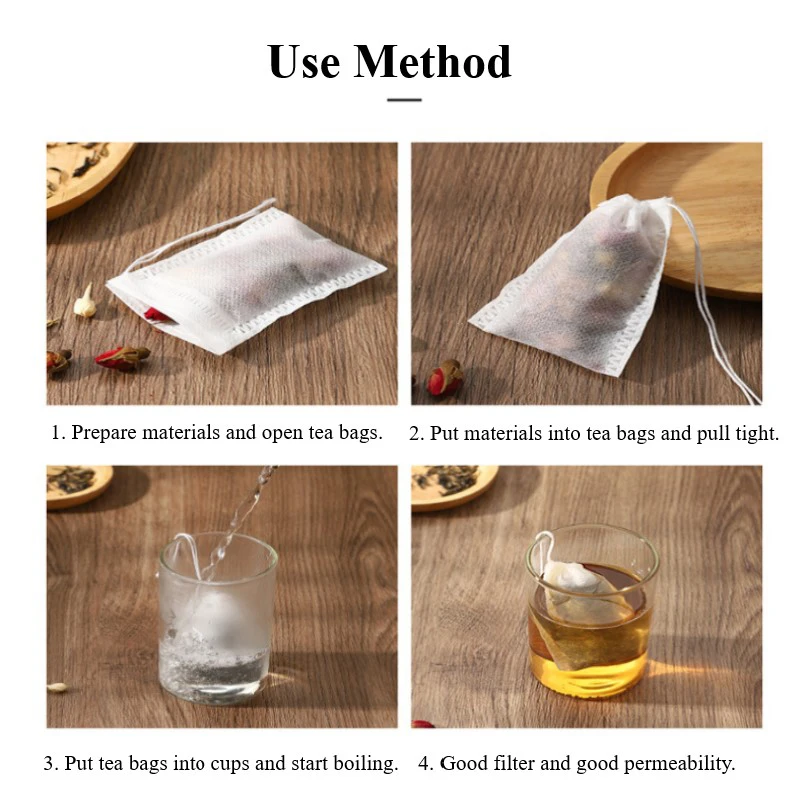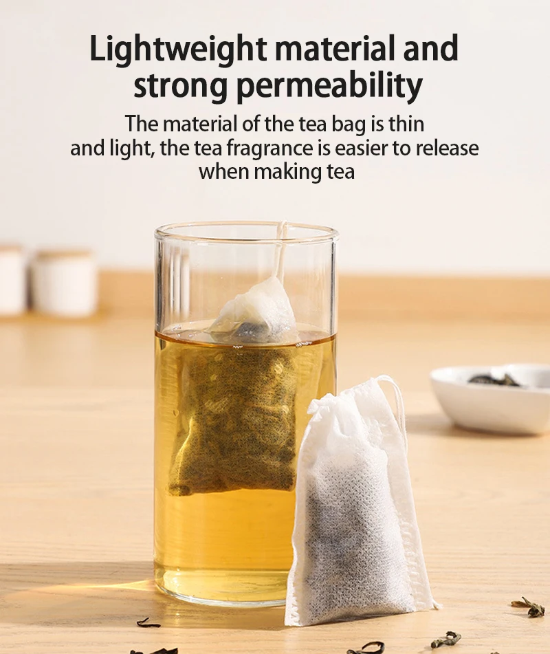 100 шт. одноразовые чайные пакеты, фильтр для заварки чая со шнурком, запаянный, пищевой, нетканый материал QBMY