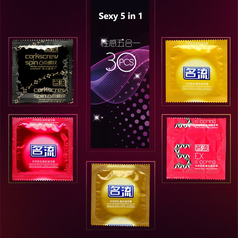 Латексные презервативы Mingliu, для мужской контрацепции, сверхтонкие, с пупырышками, 5 типов, 30 шт.