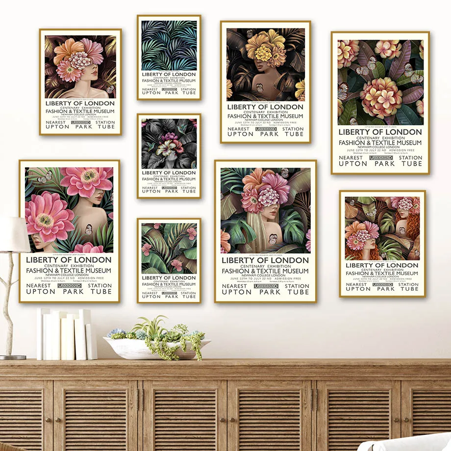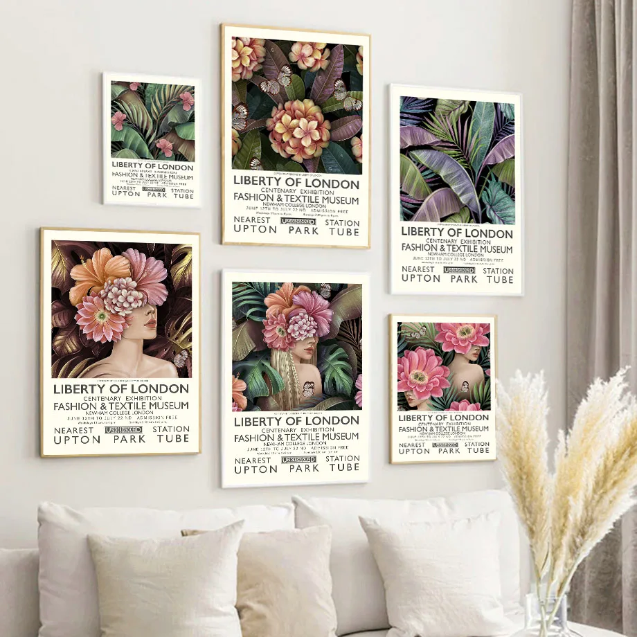 Винтажные Цветочные листья свободы Лондона настенная живопись холст...