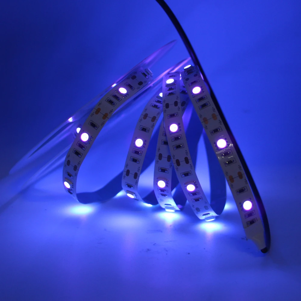 Особенности:Сверхяркий 5050 SMD УФ-светодиодный ультрафиолетовый, высокая интенсивность и надежностьВодонепроницаемая гибкая светодиодная лента30 SMD УФ ультрафиолетовых светодиодов на метрСамоклеящаяся задняя сторона с двусторонней клейкой лентойБесплатное обслуживание, простая установкаКаждый 1-светодиодный удобный, не повреждая остальную лентуГибкая лента для изгибаУльтра-яркий, но работает при низкой температуреПараметрыВходные Вольт: 5 В постоянного токаДлина волны: 395-405нмДлительный срок службы 50000 + часовСтепень защиты: не водонепроницаемыйPCB Цвет БелыйРегулировка яркости: Да (требуется диммер)Trimmable: Да (можно резать каждые три светодиода)Режим привода: контактное напряжениеУгол луча: 120 °Угол обзора: регулируется установкойРабочая температура: от-20 до 50 °Размер: W1.0cm x T0.25c