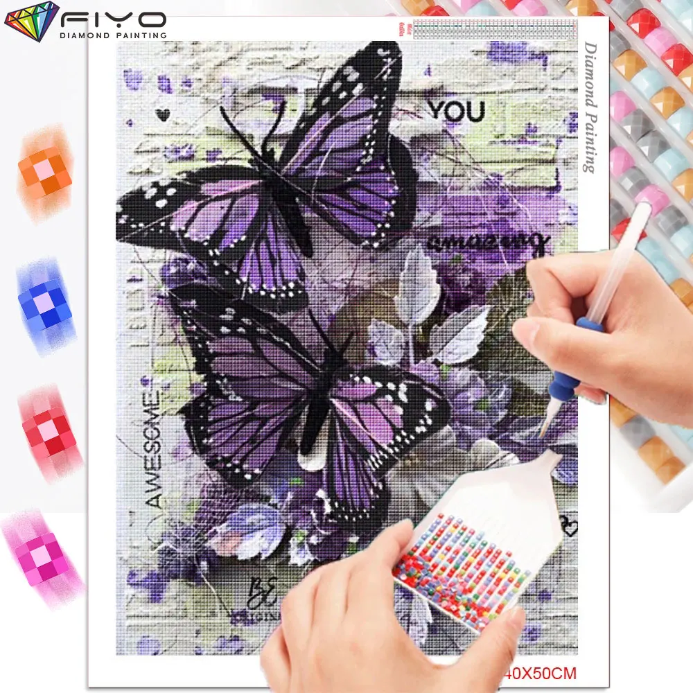 FIYO 5D алмазов картина огненный бабочка камни в форме ромба круглы...