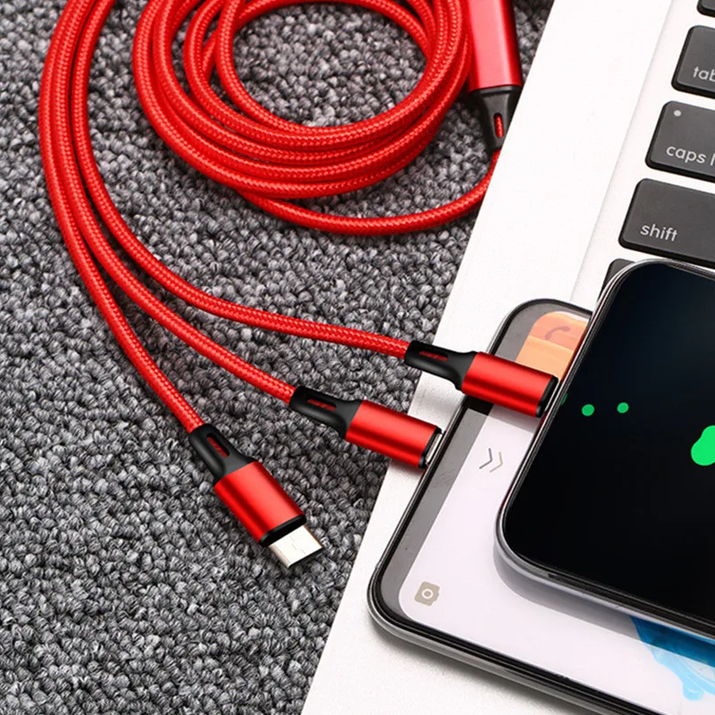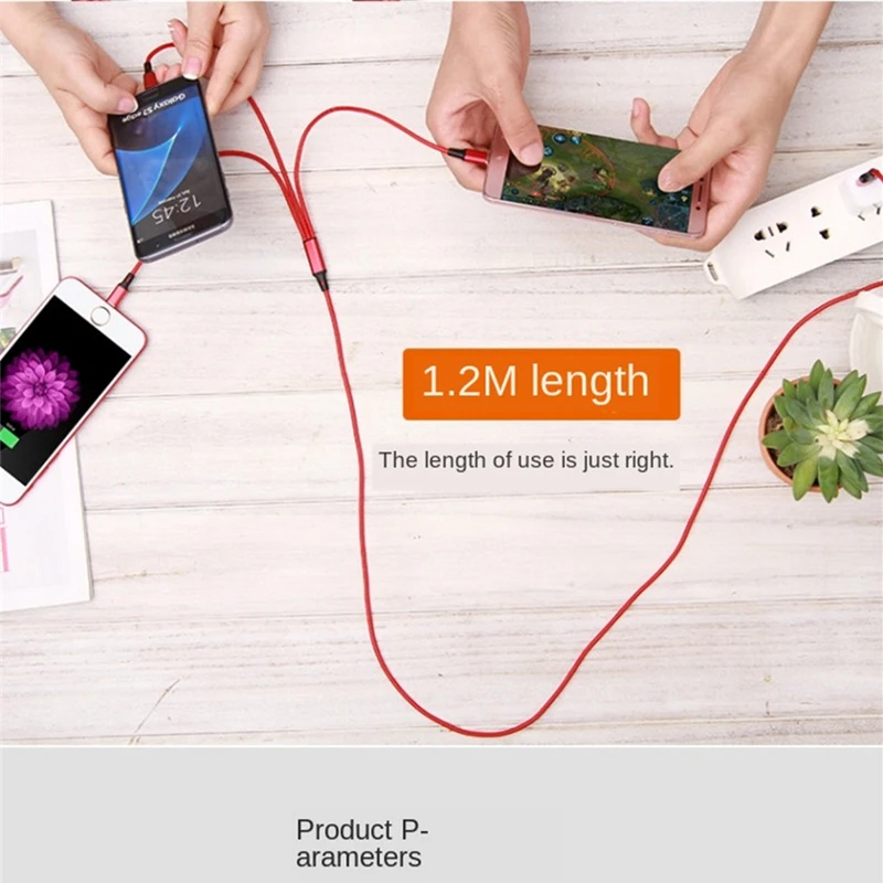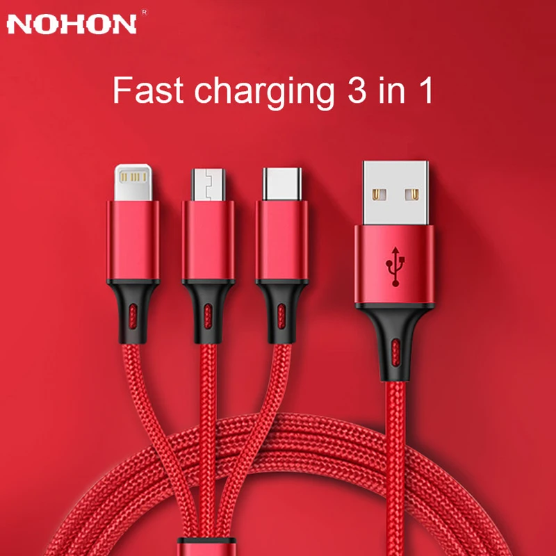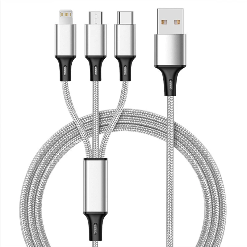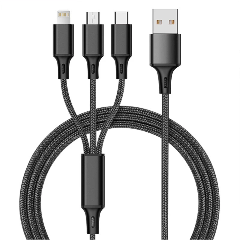 USB-кабель 3 в 1 для зарядки iPhone 6 7 8X11 12 13 Samsung Xiaomi Redmi Huawei Honor OnePlus Android, зарядное устройство, провод 1,2 м