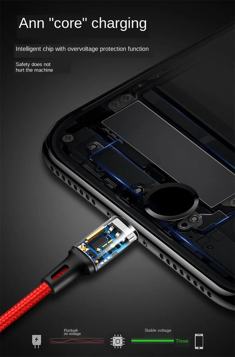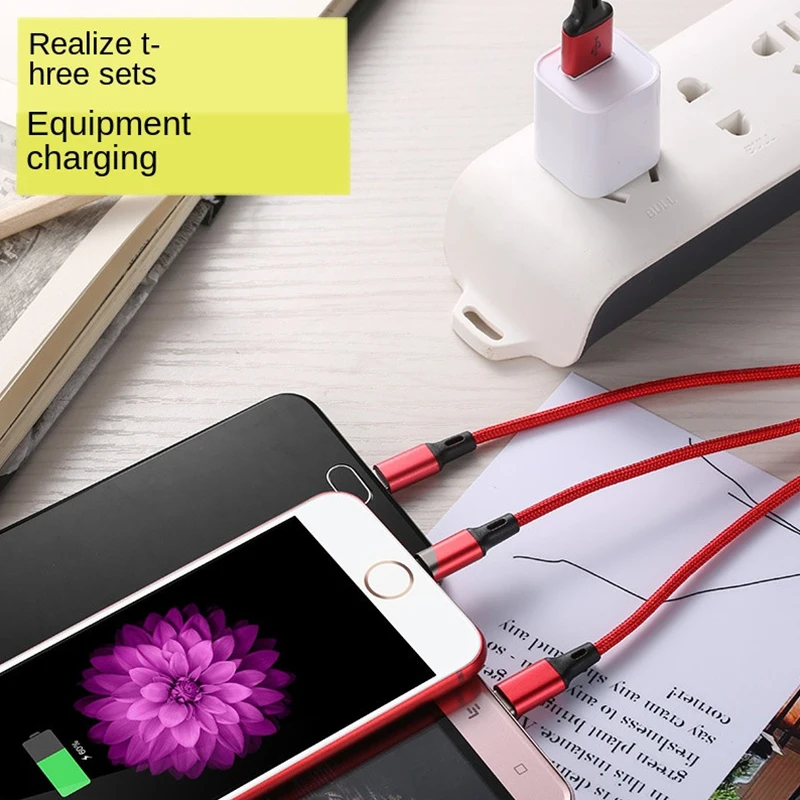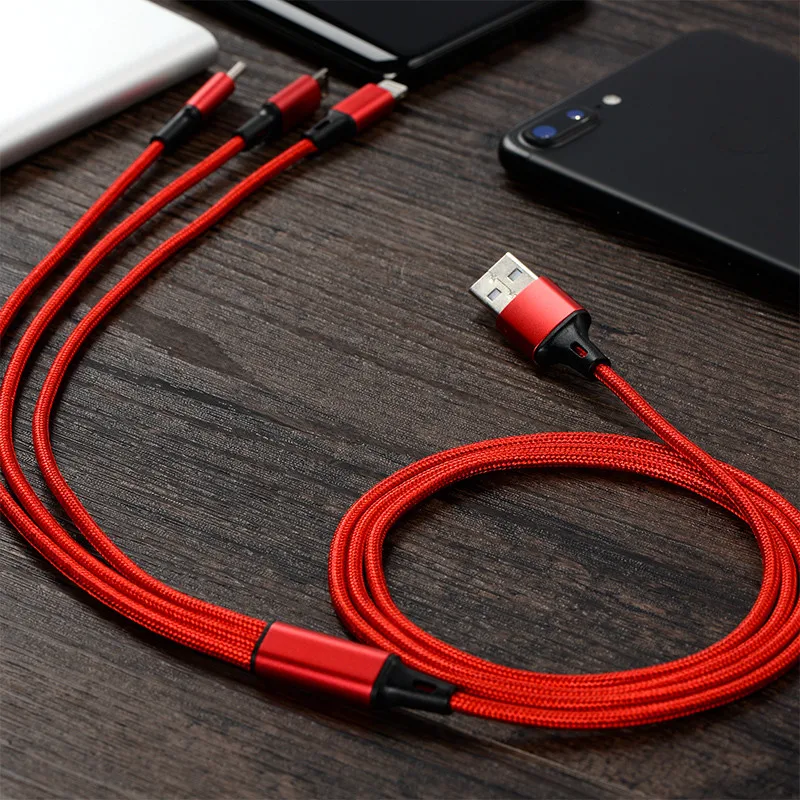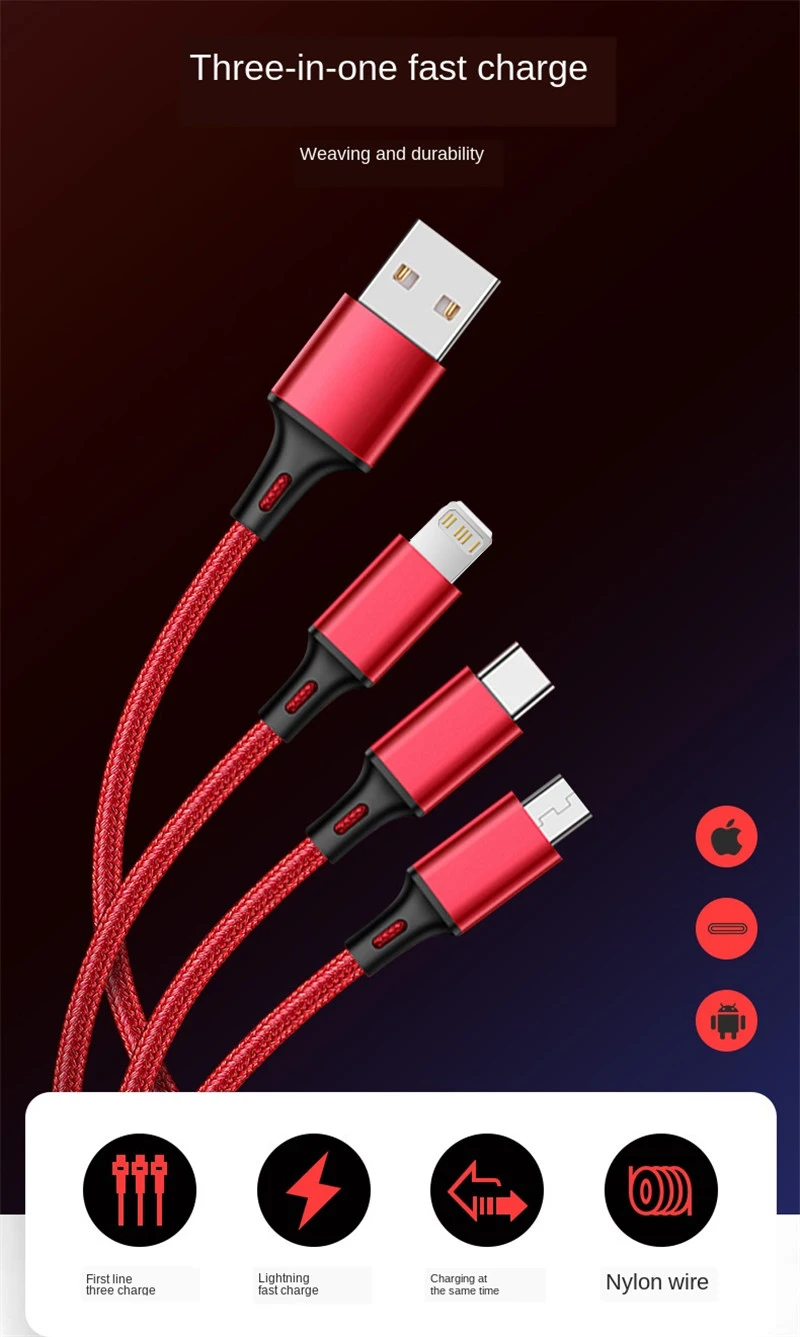 USB-кабель 3 в 1 для зарядки iPhone 6 7 8X11 12 13 Samsung Xiaomi Redmi Huawei Honor OnePlus Android, зарядное устройство, провод 1,2 м