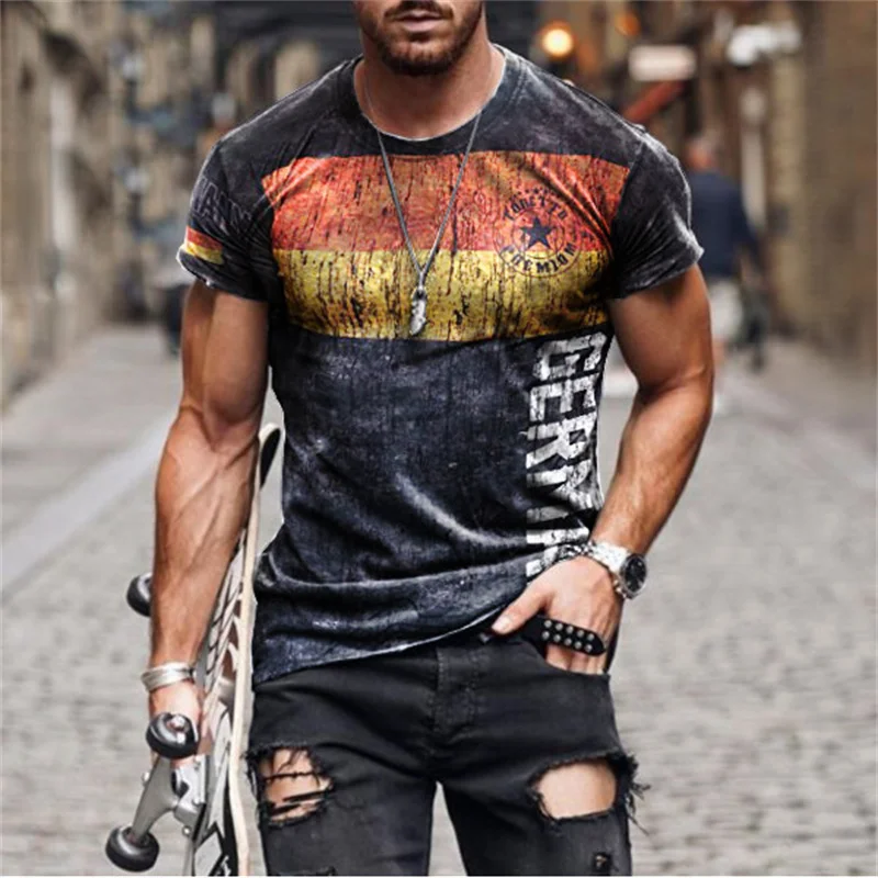 Мужская футболка с коротким рукавом и 3D-принтом карт, Повседневная Уличная футболка в стиле ретро, Новинка лета 2021
