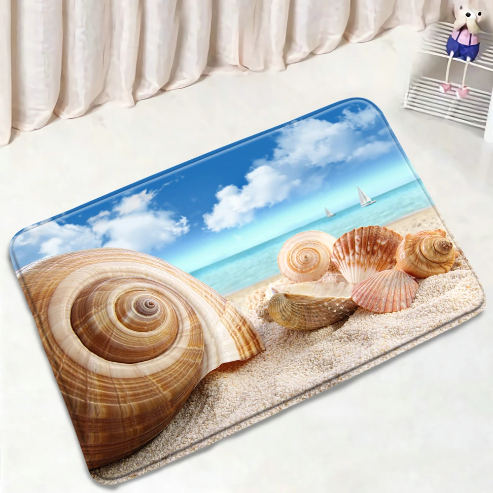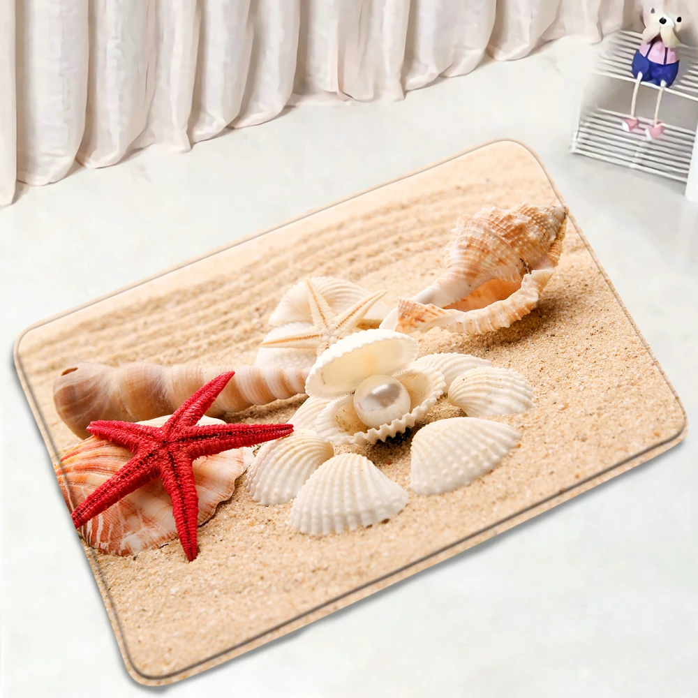 Морской тематический коврик для ванной, Пляжная Морская звезда, ракушка, фланелевый нескользящий коврик из микрофибры, ванной, предмет интерьера для кухни, спальни