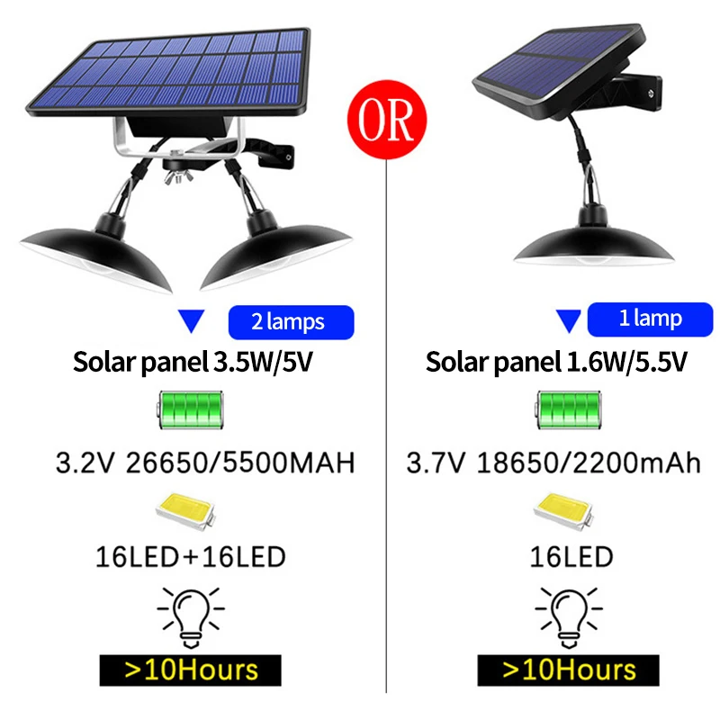 Подвесной светильник на солнечной батарее с двойной головкой, 4800 мАч