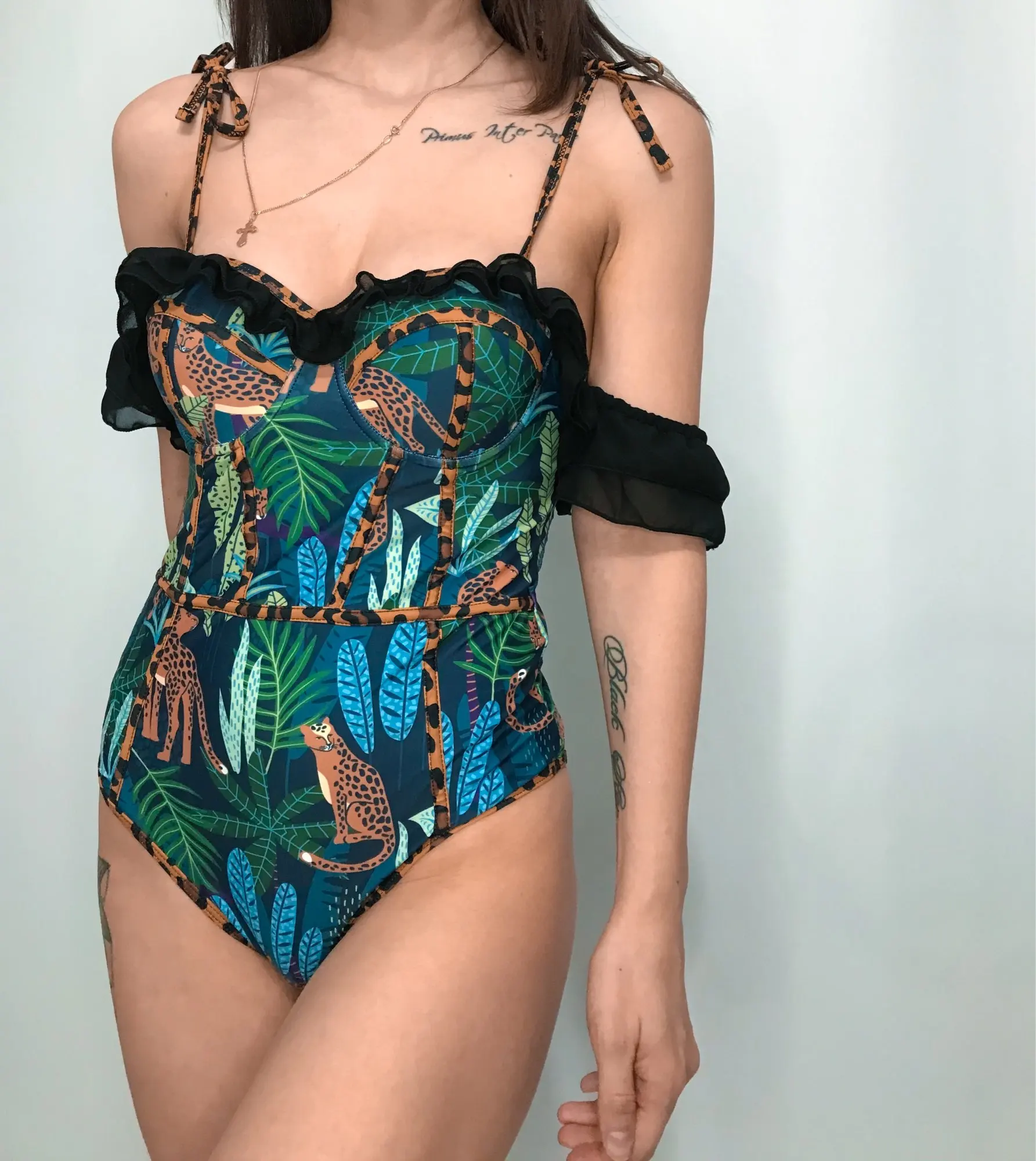 2022 сексуальный слитный купальник с принтом, купальник с оборками,...