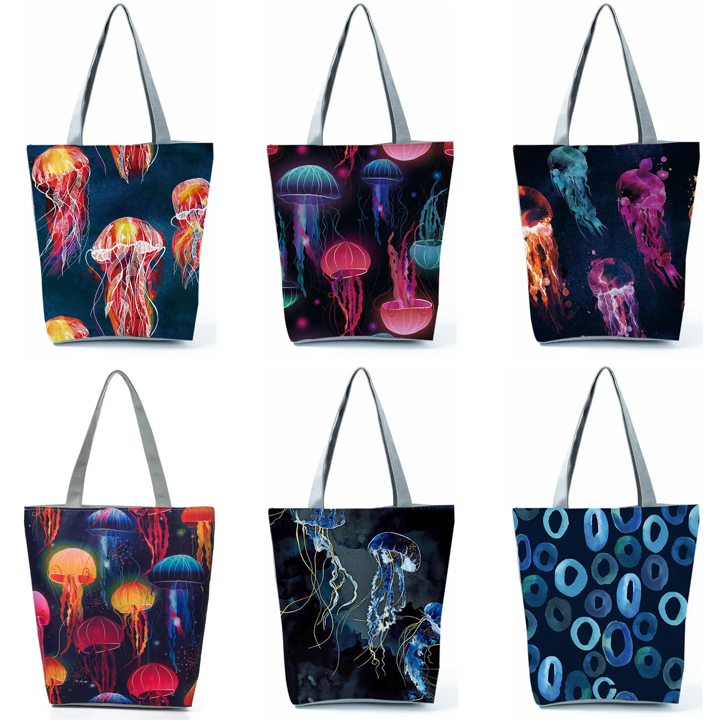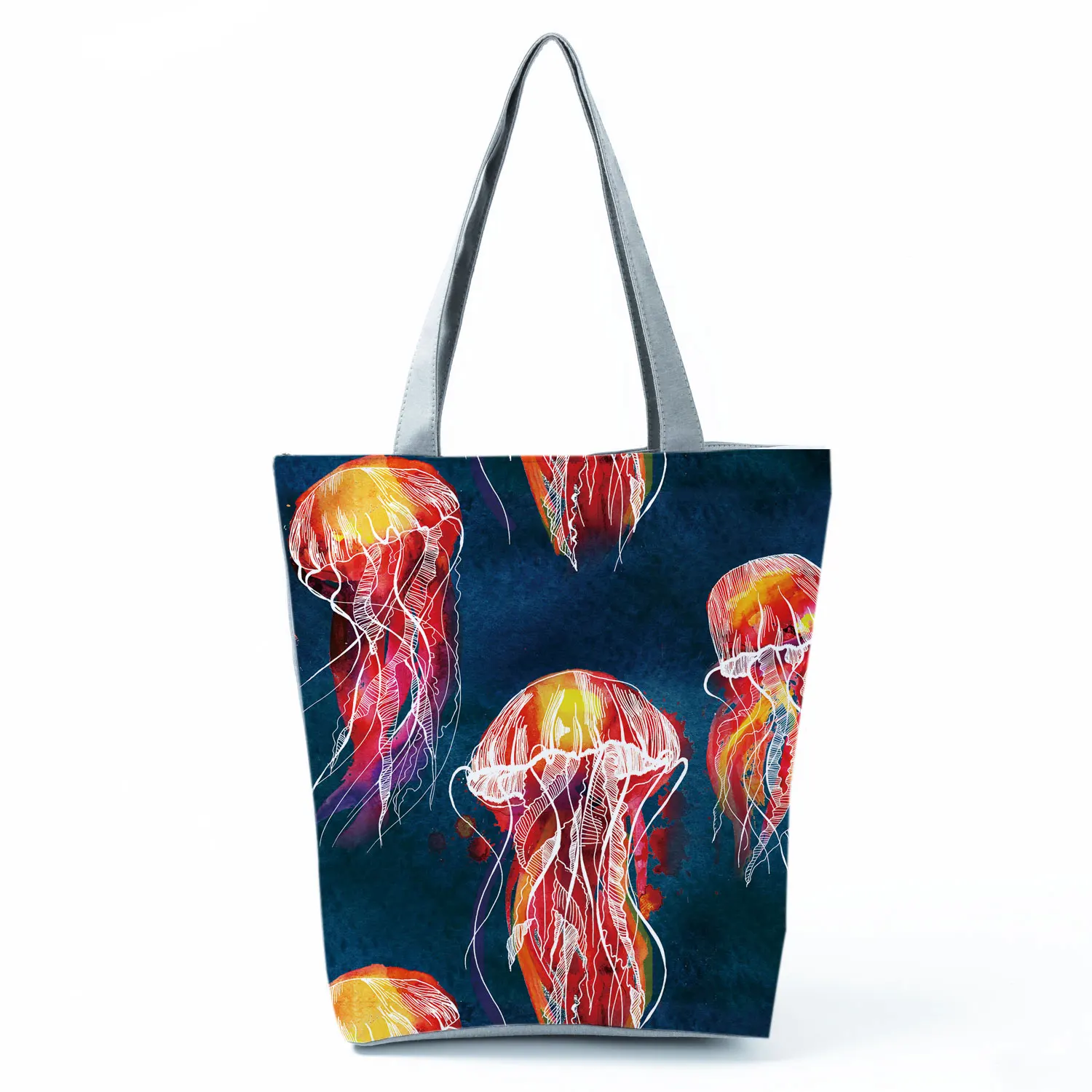 Женская сумка-тоут с принтом медузы, сумки из полиэстера, повседневные дорожные пляжные сумки