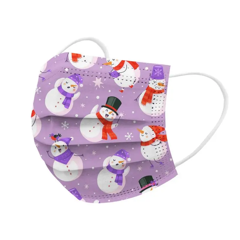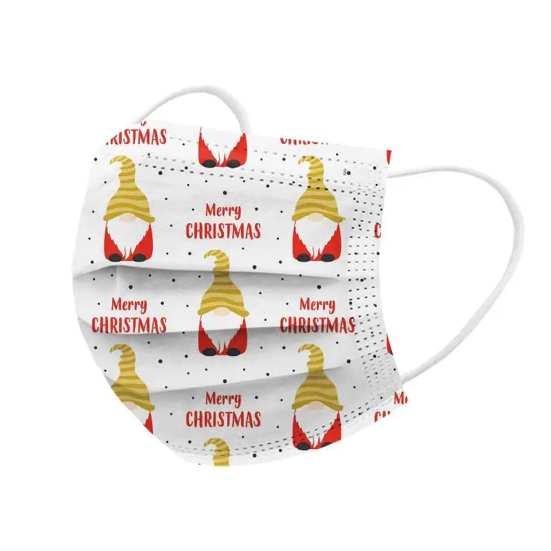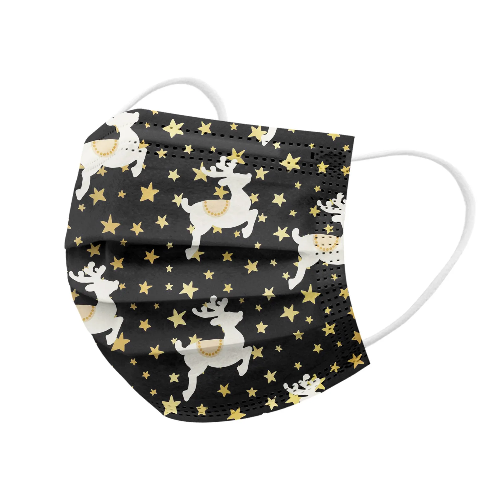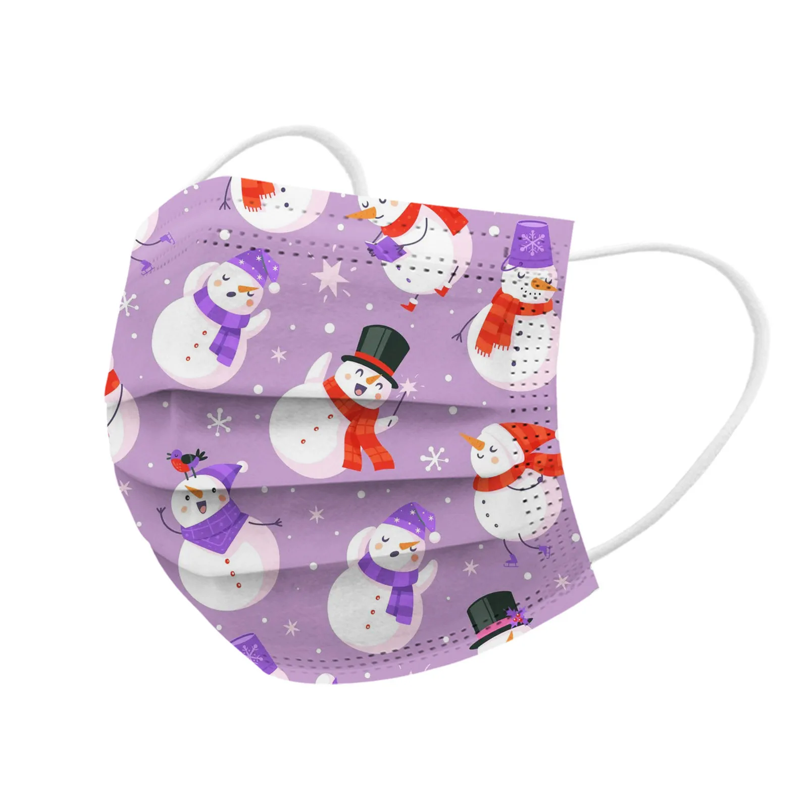 Милые рождественские маски для взрослых и детей, 50 одноразовых трехслойных мелированных рождественских печатных масок