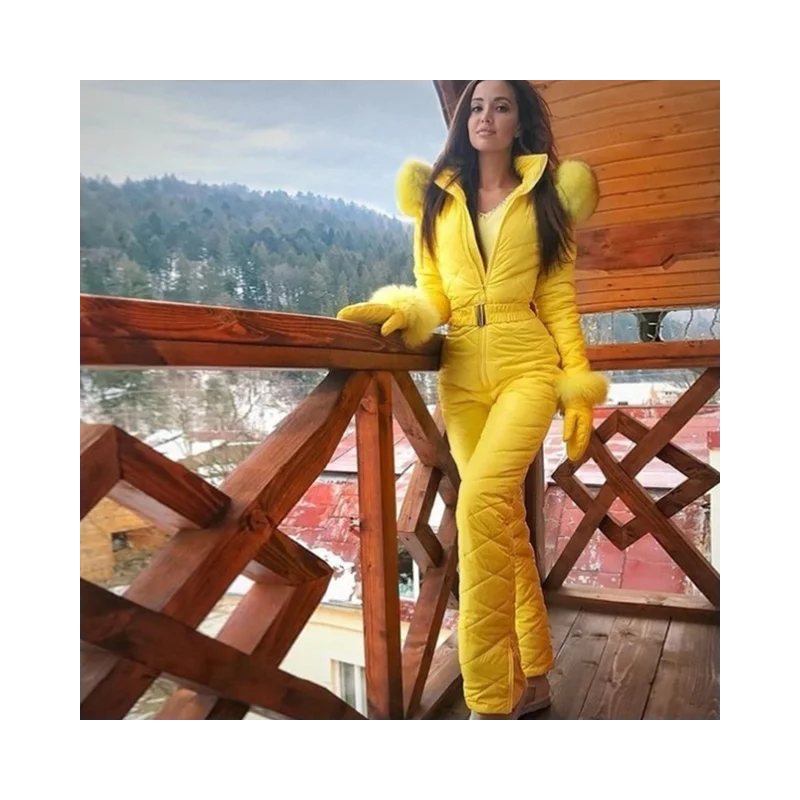 Зимний комбинезон с капюшоном, парка, элегантный хлопковый мягкий теплый лыжный костюм с поясом, прямая молния, цельный Женский Повседневный Спортивный костюм