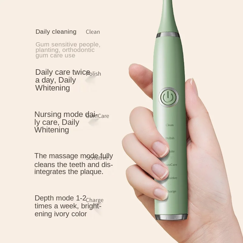 Супер звуковая электрическая зубная щетка es для взрослых и детей USB умная отбеливающая зубная щетка с таймером IPX7 Водонепроницаемая электрическая зубная щетка с 5 зубцамиКатегория продукта: электрическая зубная щеткаШестерни: 5 передачБренд: ZAIWANРежим питания: USBЕмкость аккумулятора: 800 мАч-1200 мАчТип двигателя: Бессердечный моторРежим питания: 5 передачПрименимые люди: ВзрослыеМатериал: АБС-пластик высокого качестваЦвет: белый [модель батареи], Розовый [модель батареи], зеленый [модель батареи], белый [заряжаемая модель], Розовый [заряжаемая модель], зеленый [заряжаемая модель]Характеристики продукта: 3 головки кистейМетод управления: кнопкаМаксимальная мощность: 2 ВтТип электрической зубной щетки: sonicФункция: многопозиционная регулировкаСрок службы: более 30 днейСкорость двигателя: 32000Технология оболочки: ABSПримечание: Модель аккумулятора не доставляет батарею, транспортировка аккумулятора будет проще, так как посылка будет возвращена, я надеюсь на понимание, с нетерпением жду работы с вами, самые искренние благословения