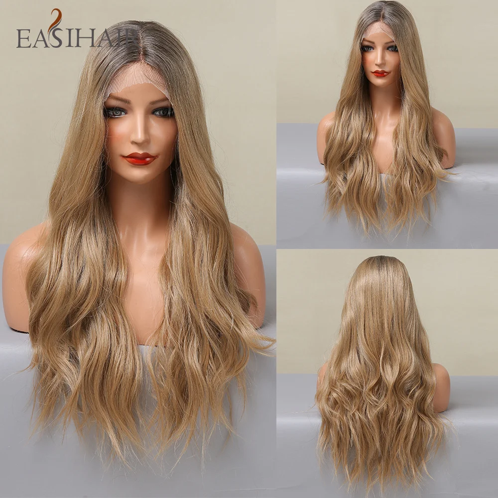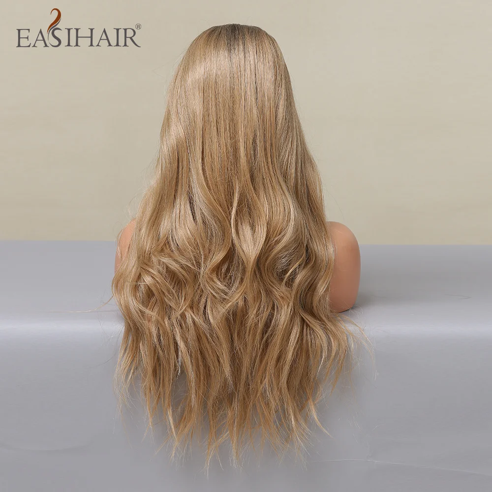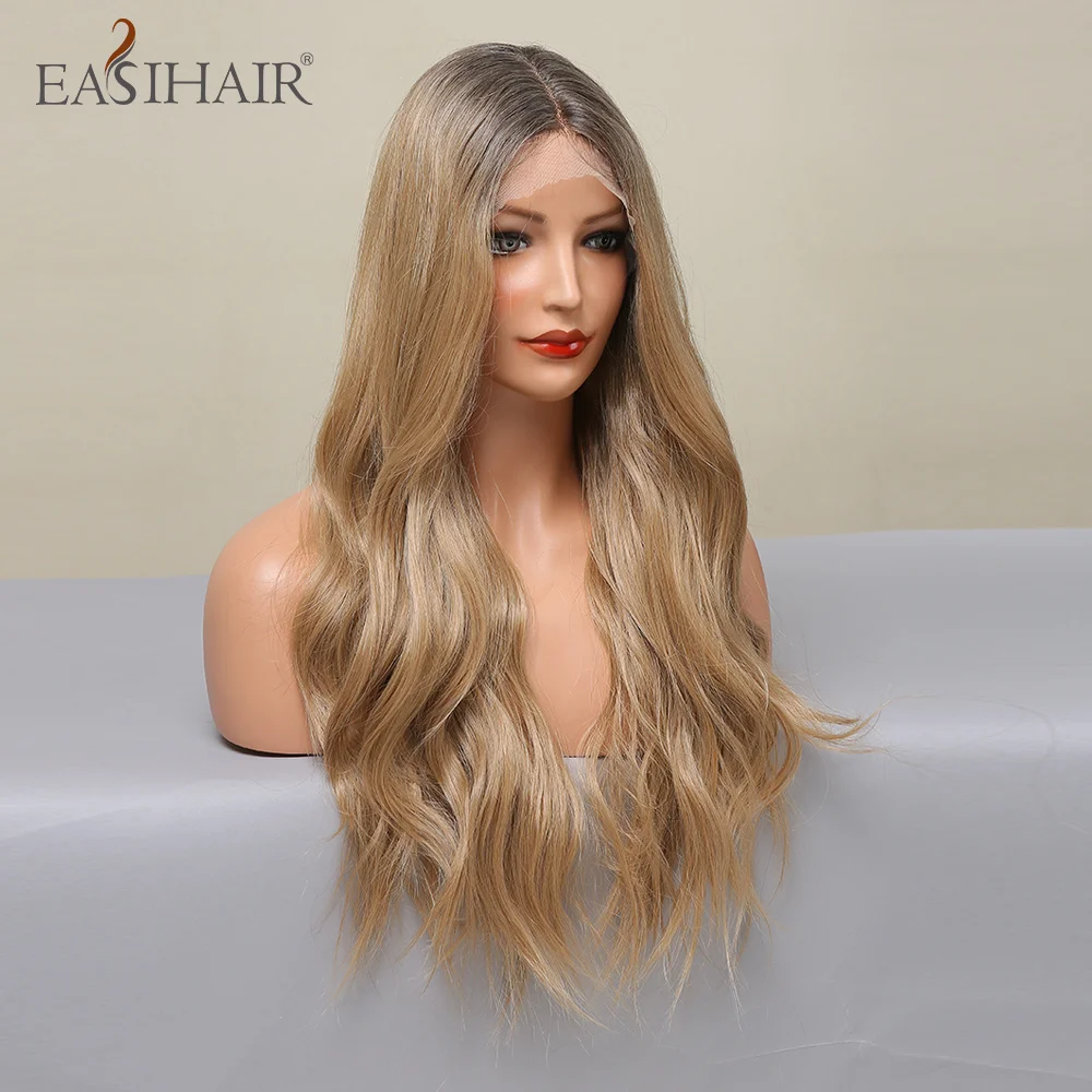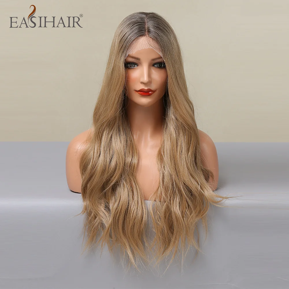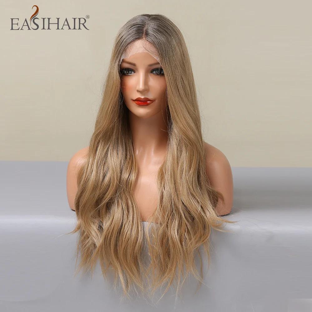 EASIHAIR Длинные Синтетические кружевные передние волнистые парики для женщин средняя часть Омбре пепельно золотистые светлые натуральные волосы для ежедневного косплея Вечерние