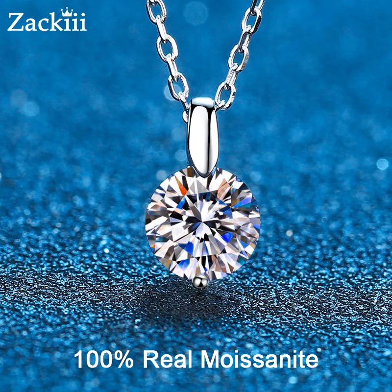 Ожерелье женское из серебра 100% пробы с муассанитом 1 карат 2 карата, колье с круглым бриллиантом VVS, Подарок на годовщину для девушек и женщин
