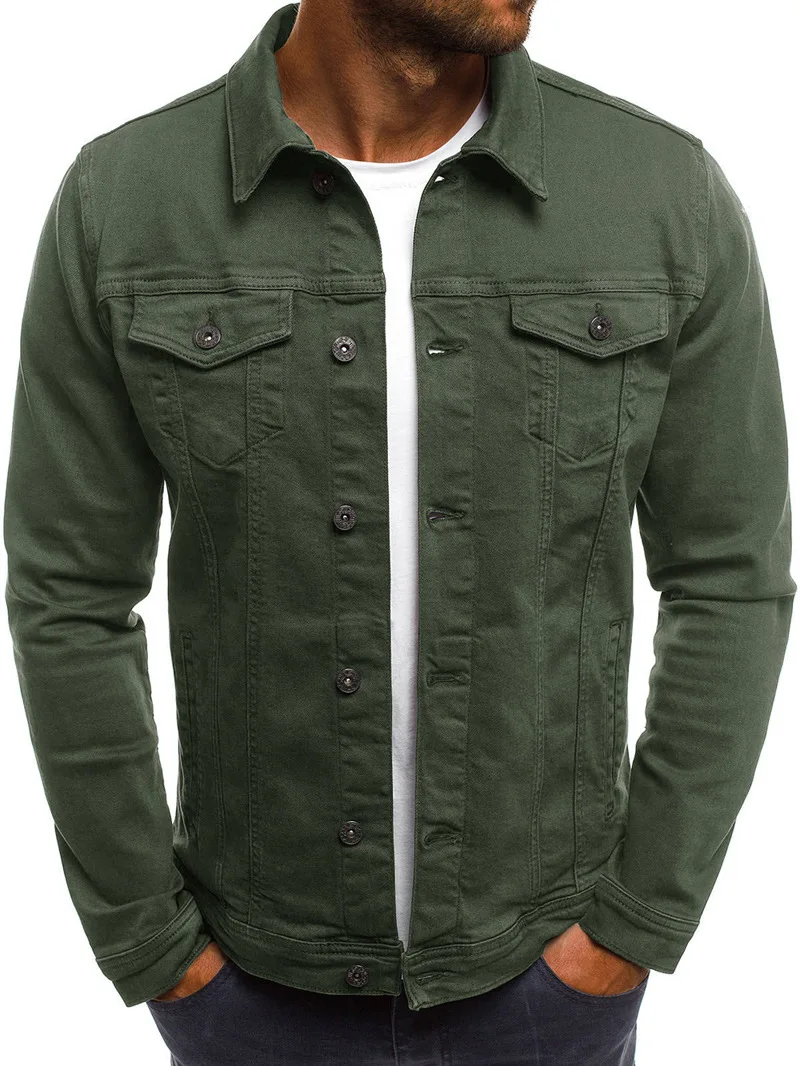 Мужская однобортная джинсовая куртка, Повседневная однотонная куртк...