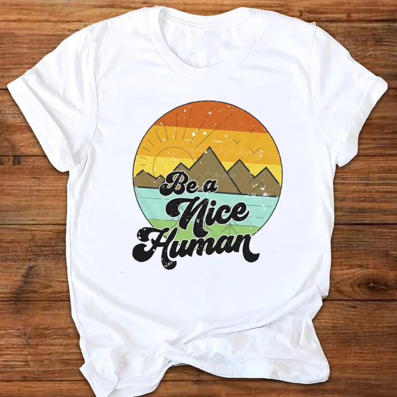 Женская Винтажная футболка с коротким рукавом, белая Повседневная Р...