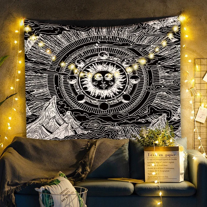 Индийский гобелен с мандалой, декор в стиле бохо, настенная ткань, хиппи, Бабочка, жизнь, дерево, одеяло, гриб, солнце, луна, Настенный Ковер