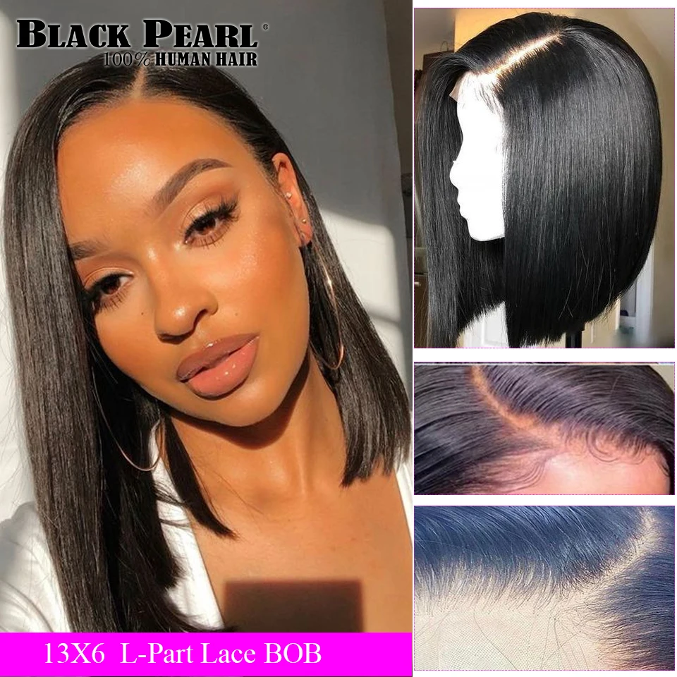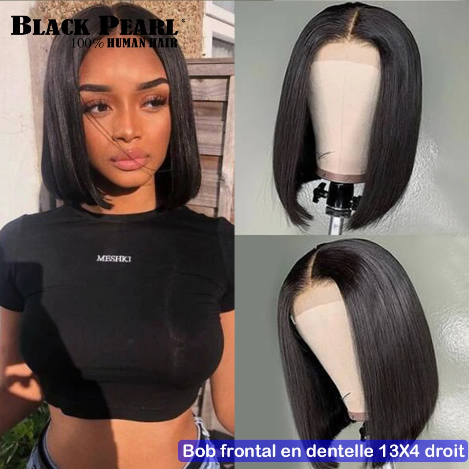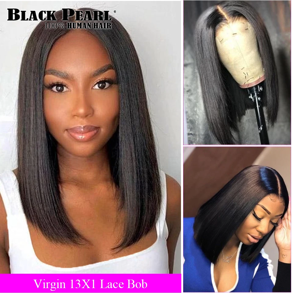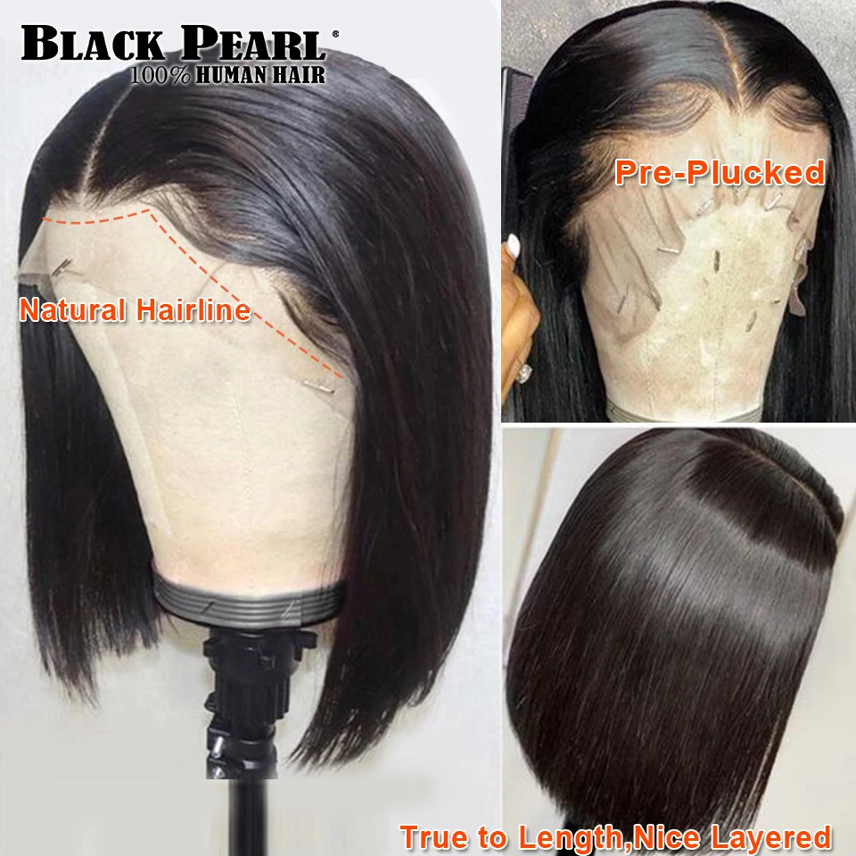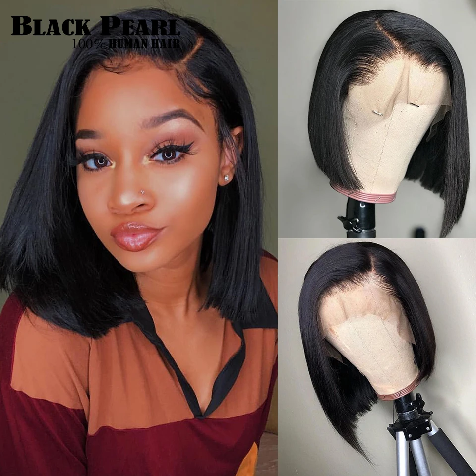 Черный жемчуг 13х4 срезанный боб парик короткий кружевной передний человеческие волосы парики бразильский прямой боб парики Remy глубокий кудрявый фронтальный парик