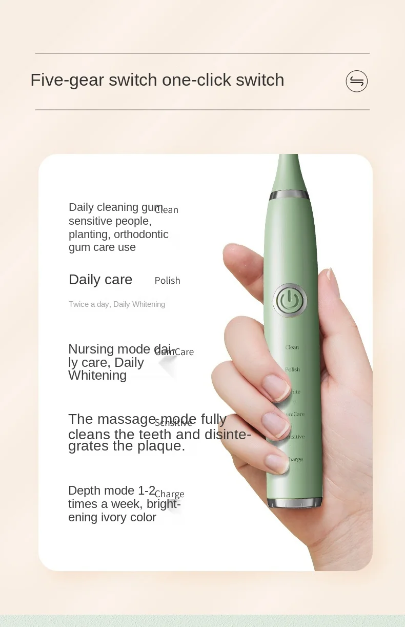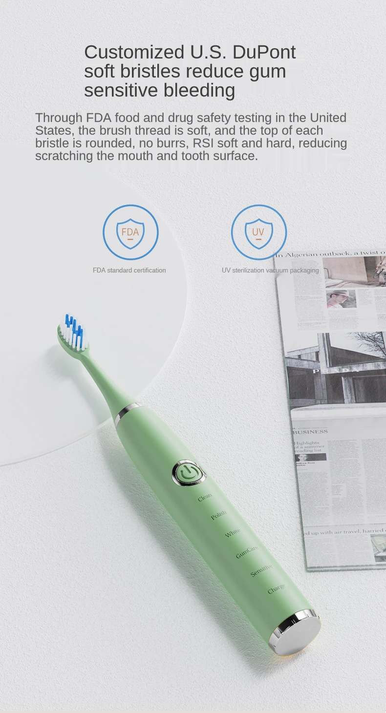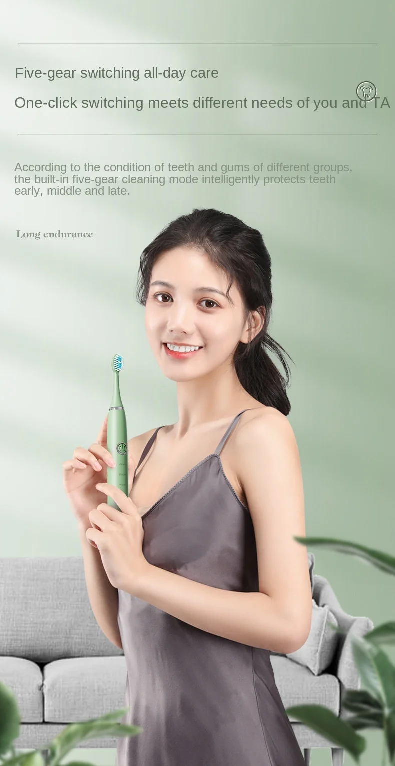 Зубная щетка ультразвуковая, водонепроницаемая, 5 передач, IPX7