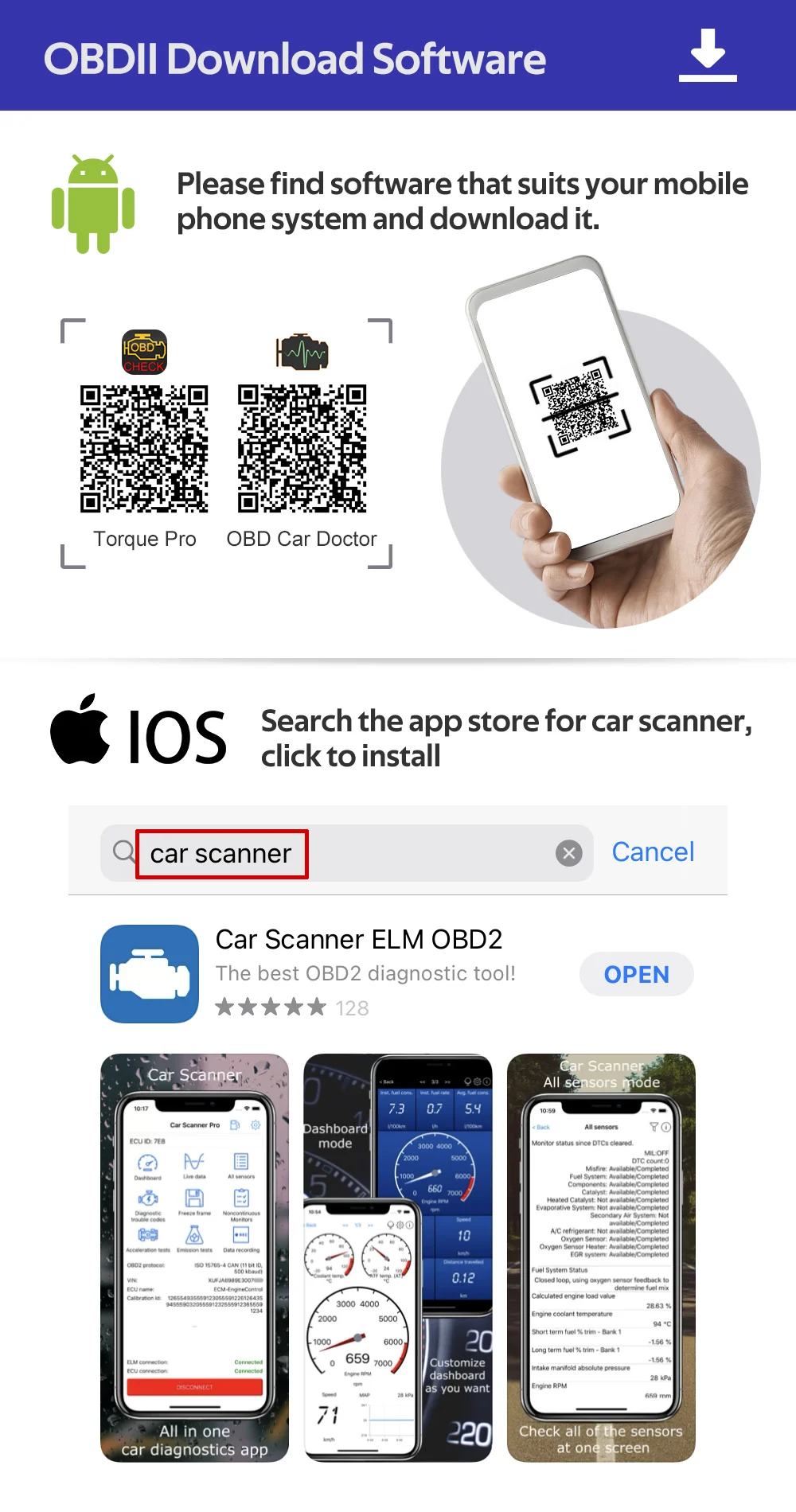 Наш WIFI ELM327 работает с iPhone, IOS и Android. Все совместимы.