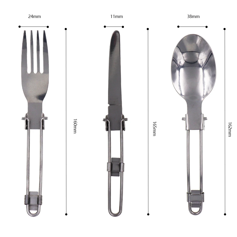 Посылка включает в себя:3 x посуда (вилка + ложка + нож)1 х сумка для хранения