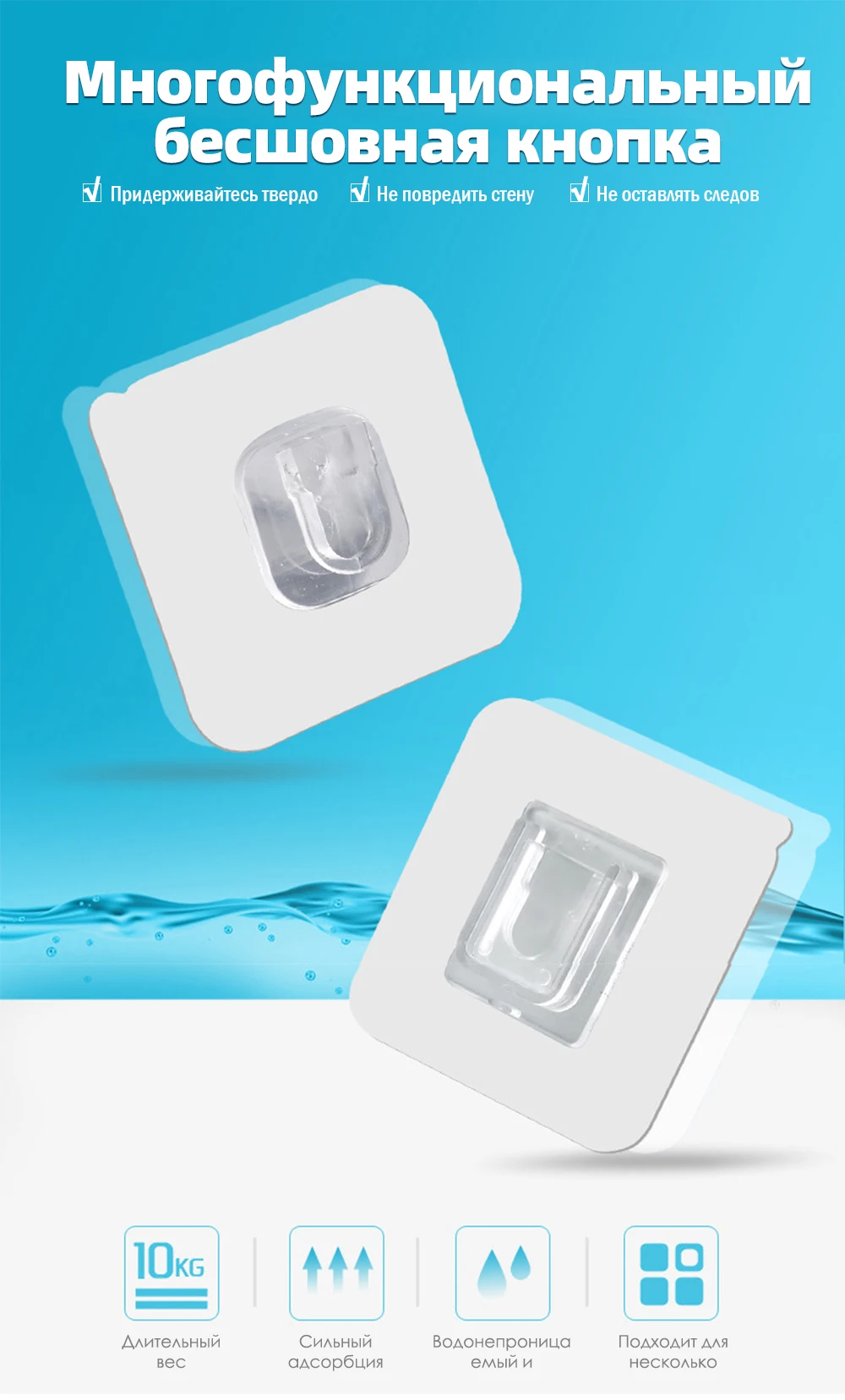 Крючки Настенные бесшовные, двусторонние, прозрачные, 10 шт.упаковка