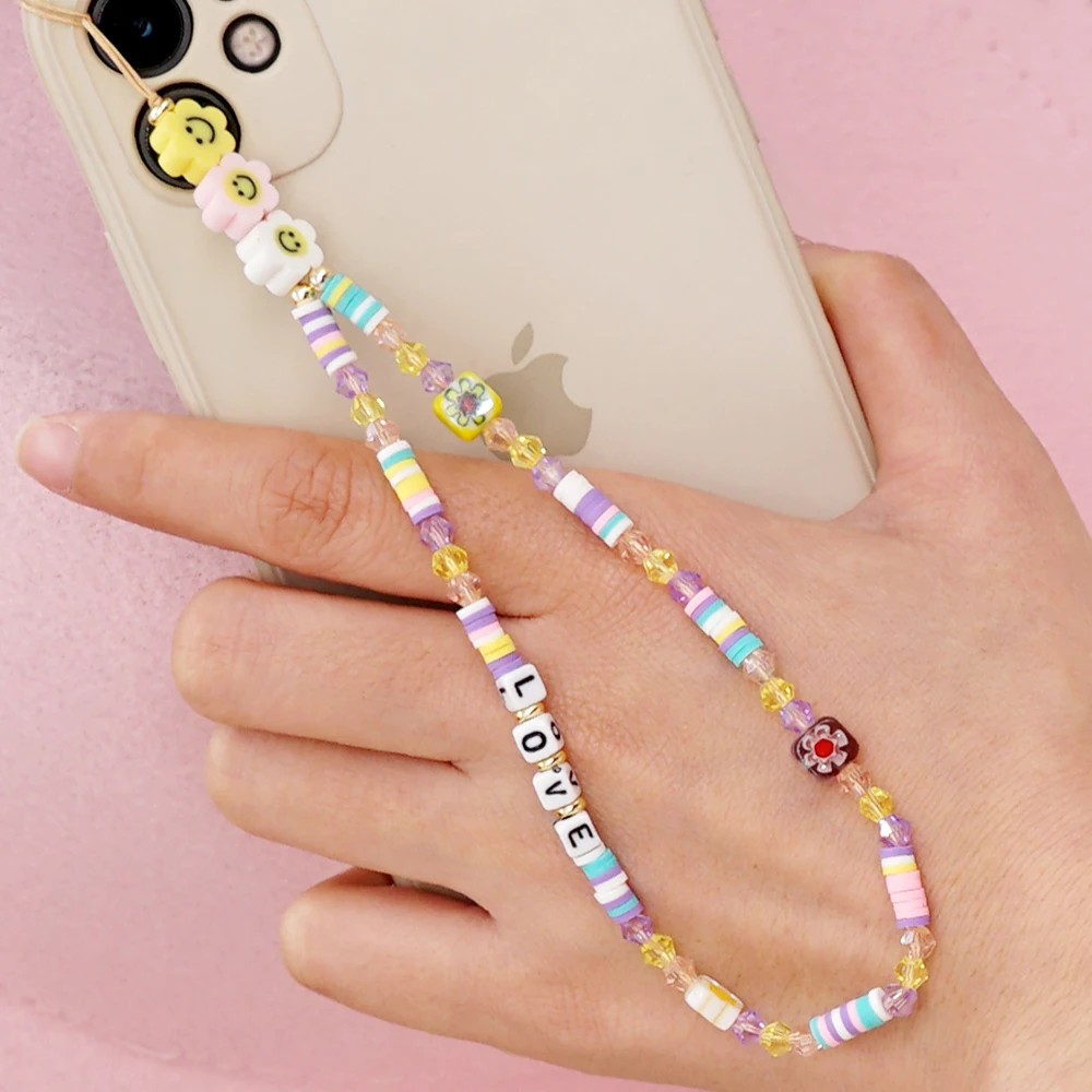 Ремешок на запястье унисекс, с радужными смайликами и надписью любовь, мобильный телефон