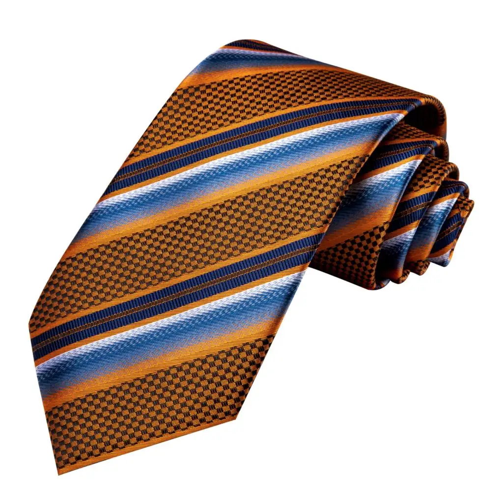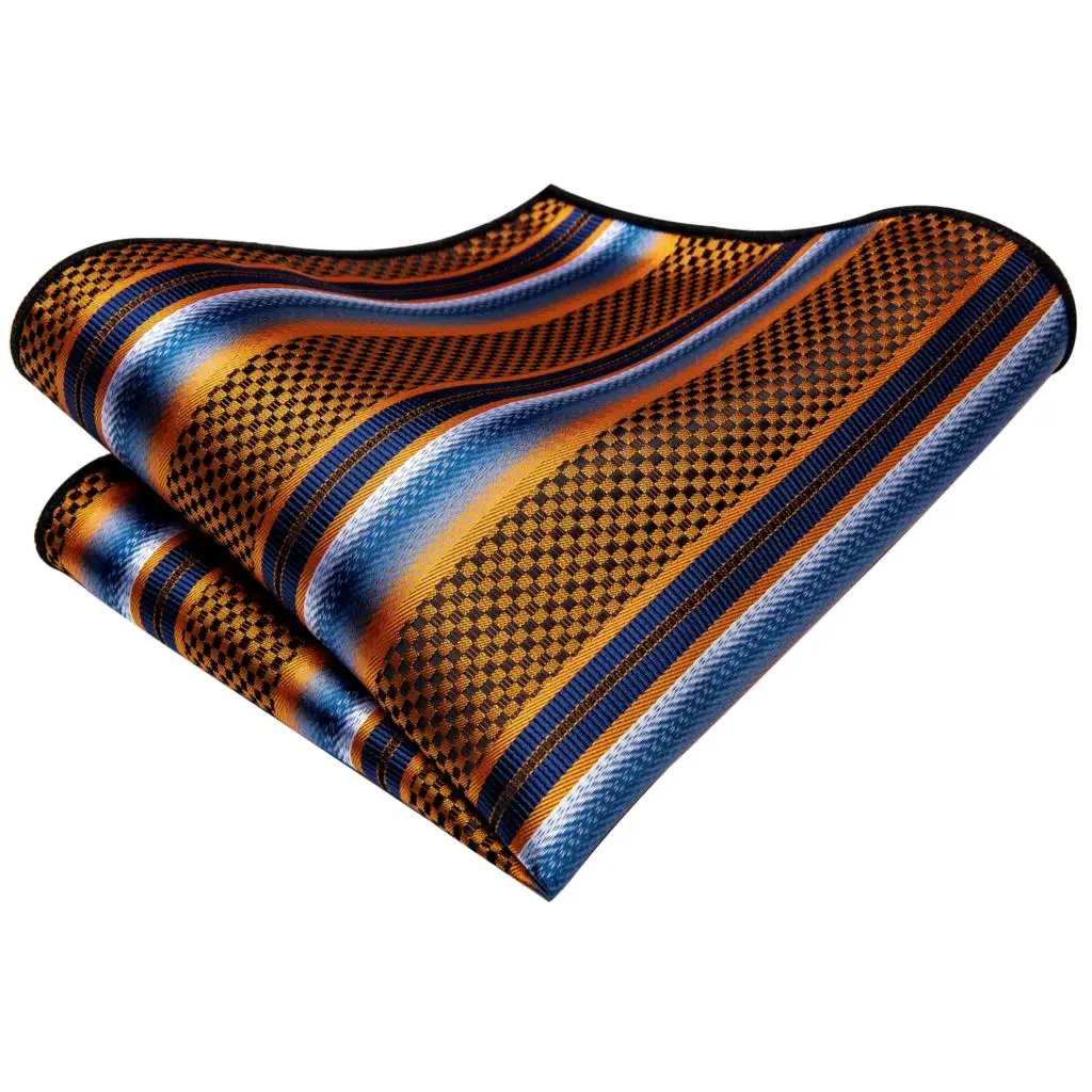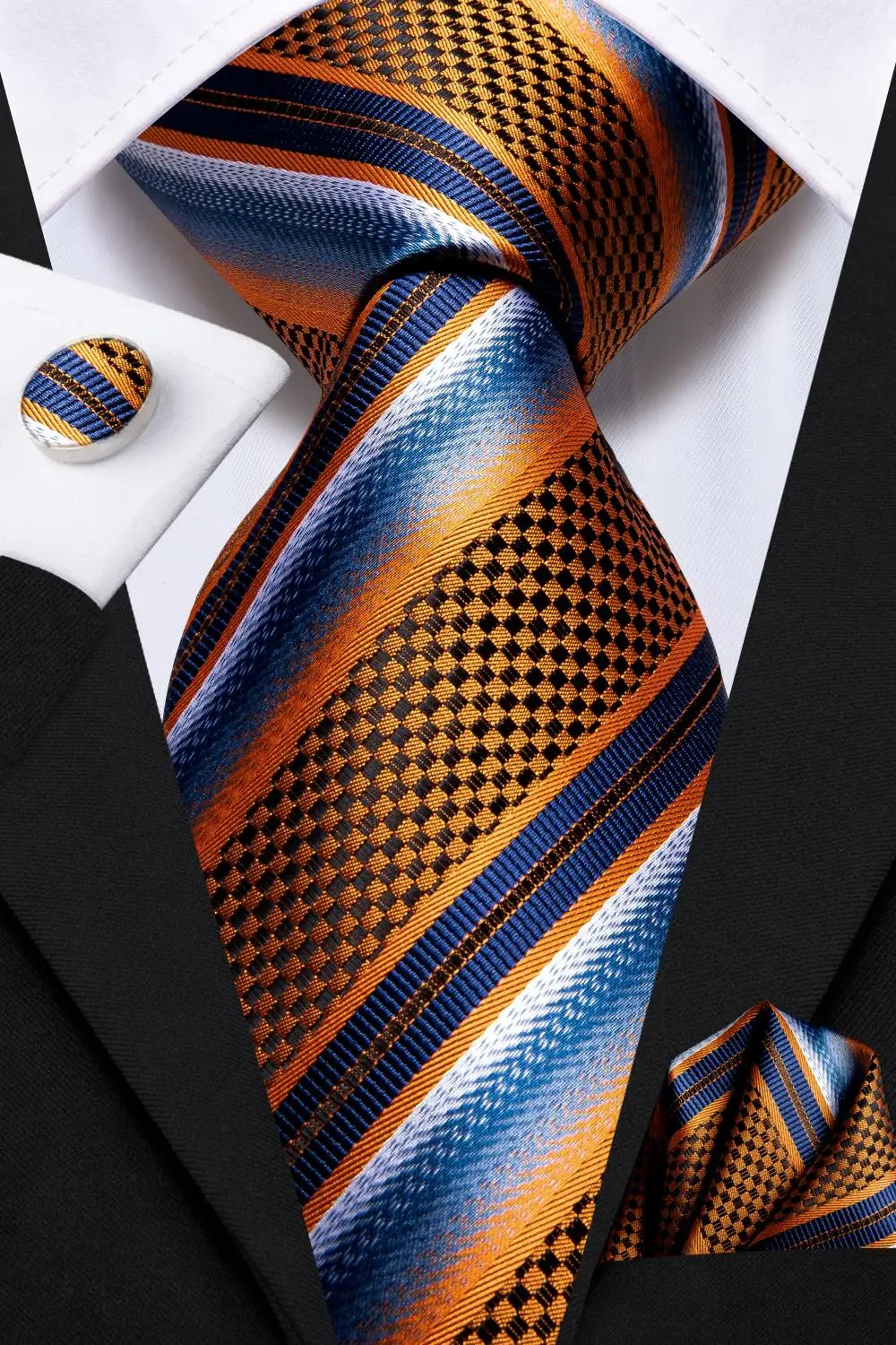 Оранжевый синий полосатый Шелковый Свадебный галстук для мужчин Handky запонки мужской галстук модный дизайнерский бизнес-вечеринка Прямая поставка Hi-Tie